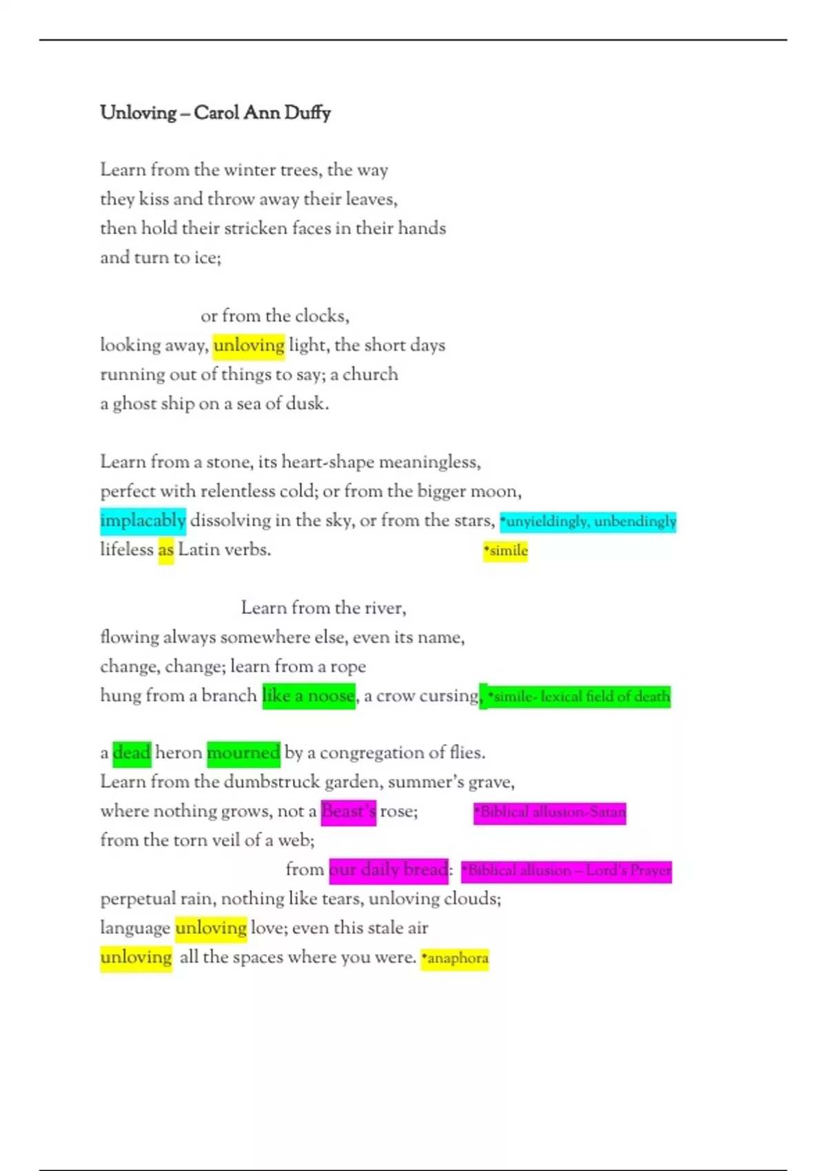 analysis of the poem "Unloving" by Carol Ann Duffy