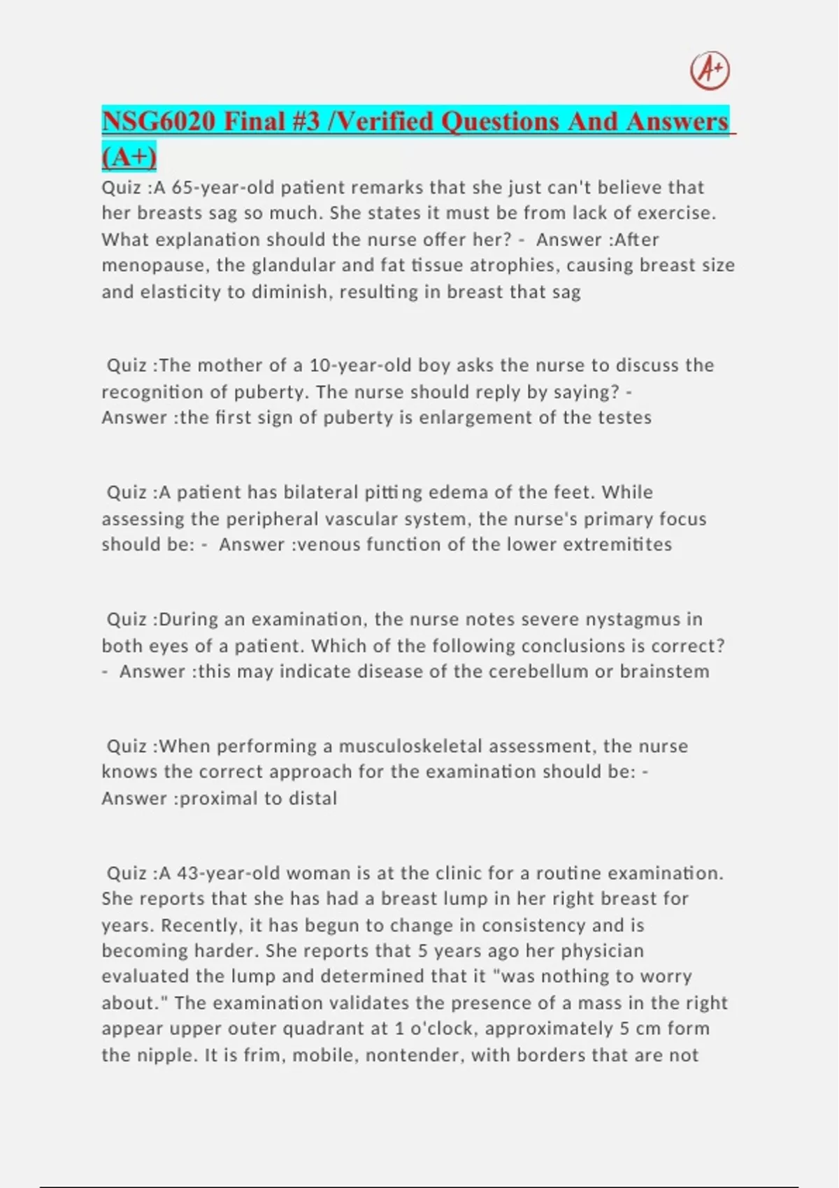 Quiz :During an examinati on, the nurse notes severe nystagmus in