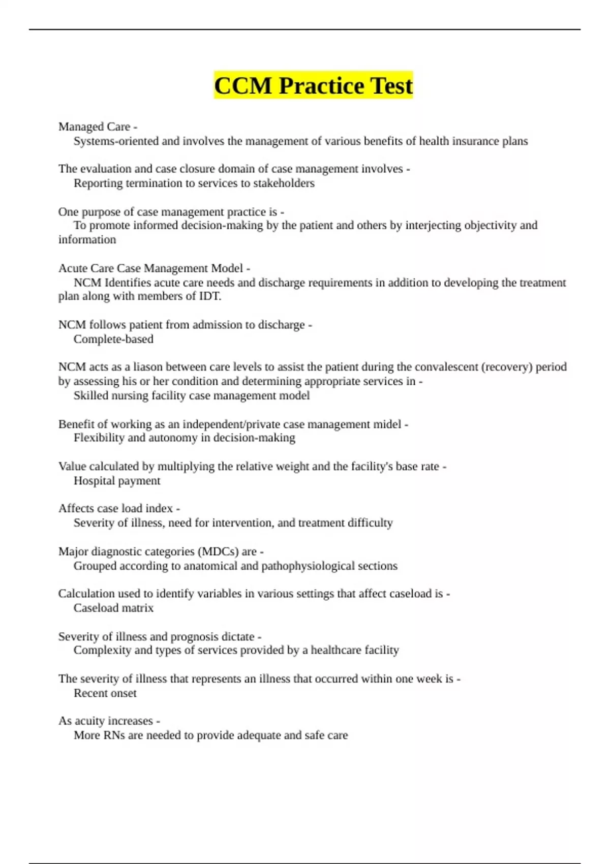 Exam of 2 pages for the course Healthcare Management at Healthcare Management (CCM Practice Test.)