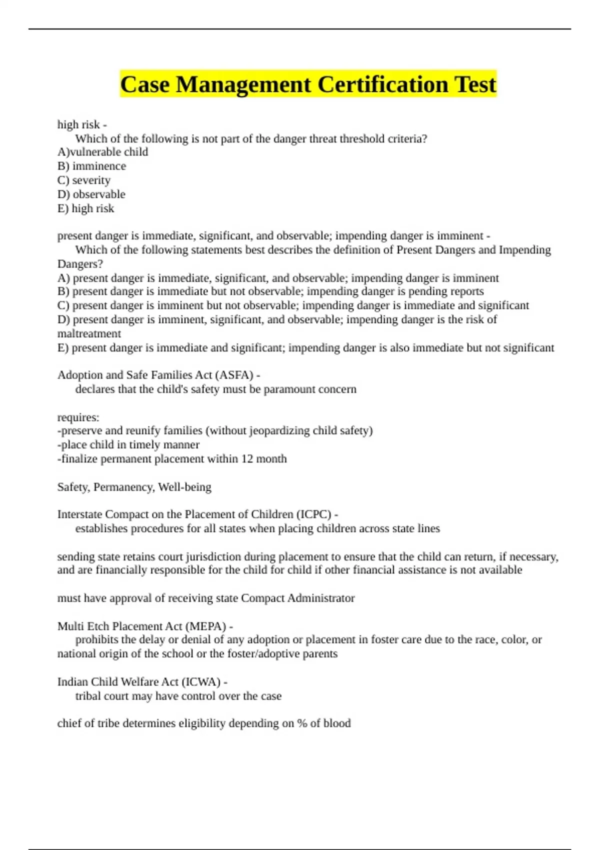 Case Management Certification Test.