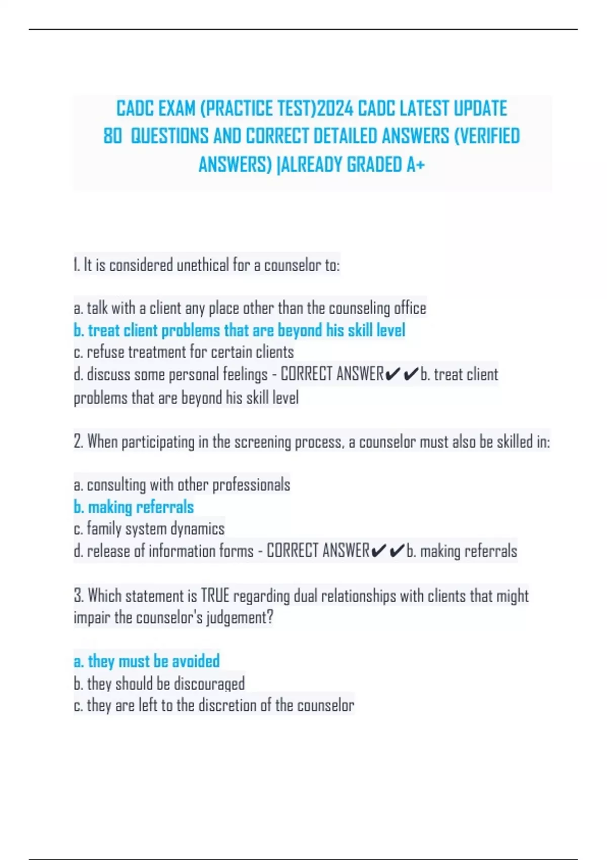 CADC EXAM (PRACTICE TEST)2024 CADC LATEST UPDATE