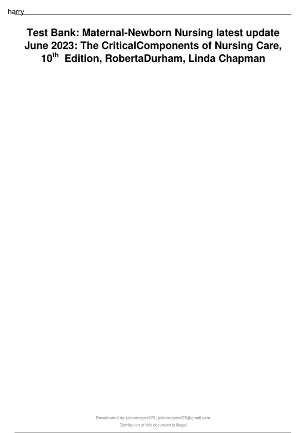 Test bank maternal newborn nursing latest updatejune 2023 the criticalcomponents of nursing care th10edition robertadurham ..
