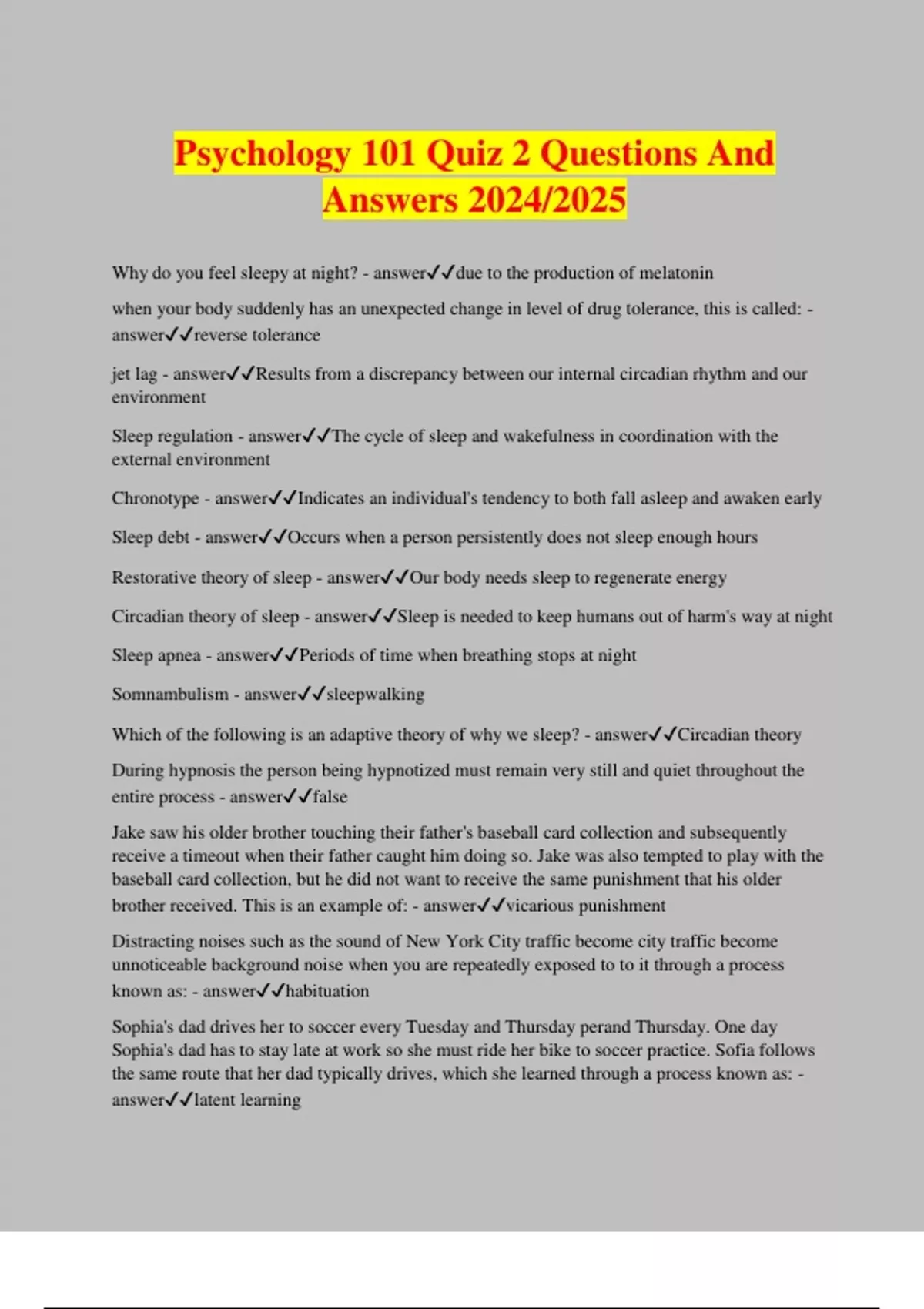 Psychology 101 Quiz 2 Questions And Answers 2024/2025