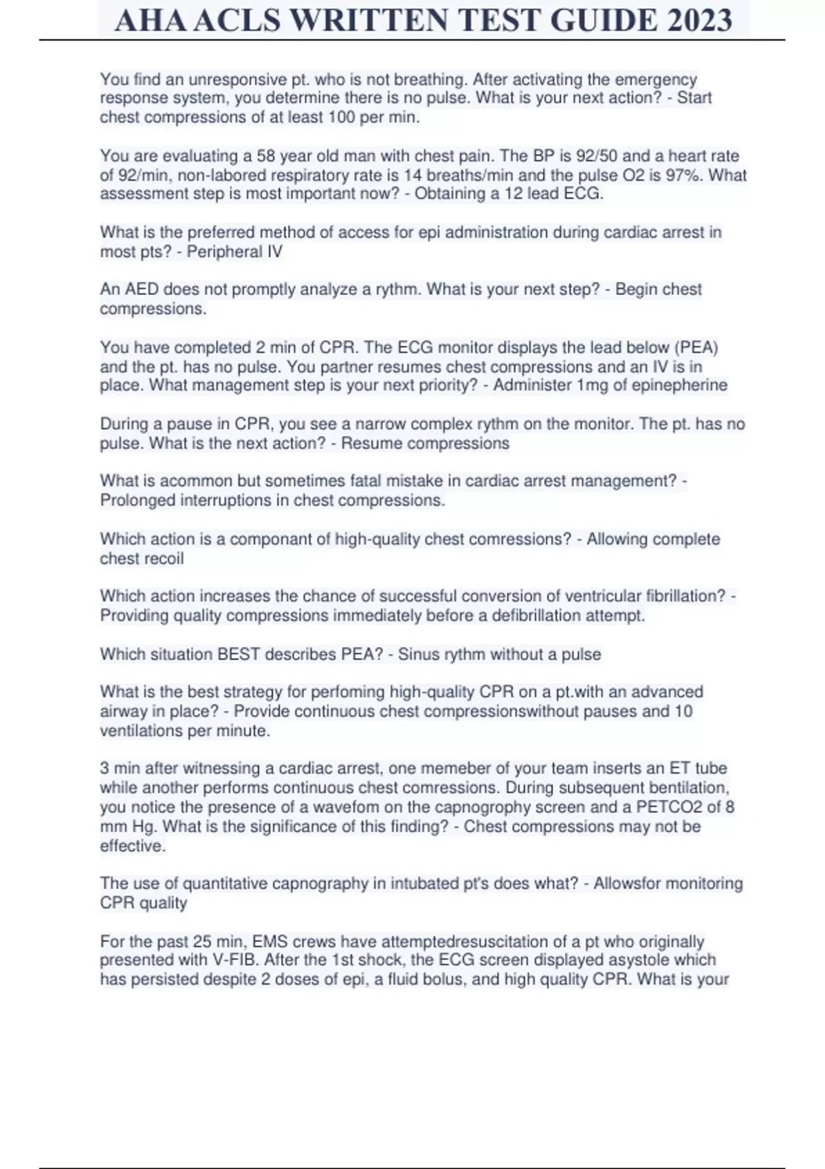 AHA ACLS WRITTEN TEST GUIDE 2023.