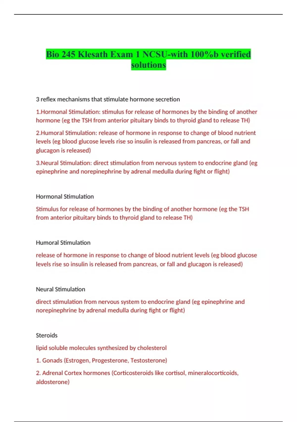 Bio 245 Klesath Exam 1 NCSU-with 100%b verified solutions