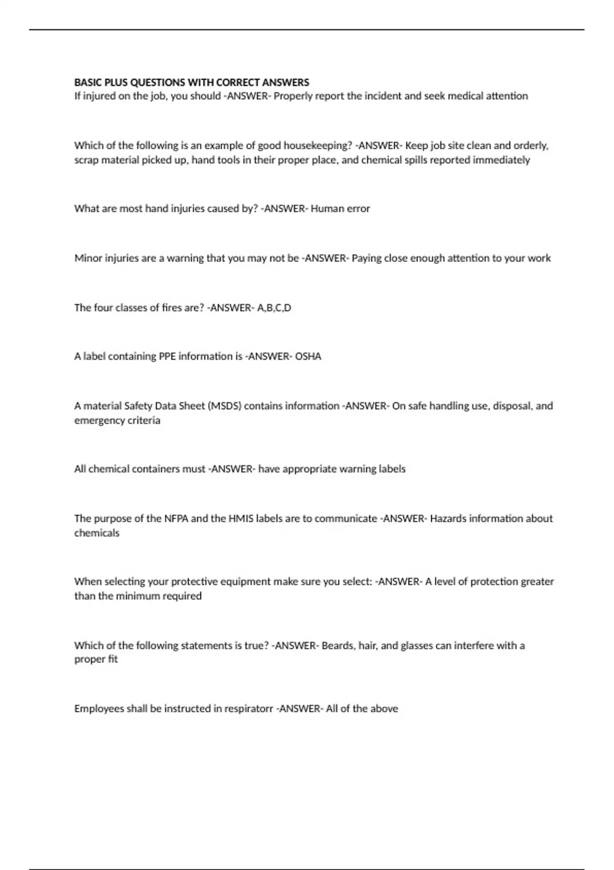 BASIC PLUS QUBASIC PLUS QUESTIONS WITH CORRECT ANSWERS BASIC PLUS QUESTIONS WITH C