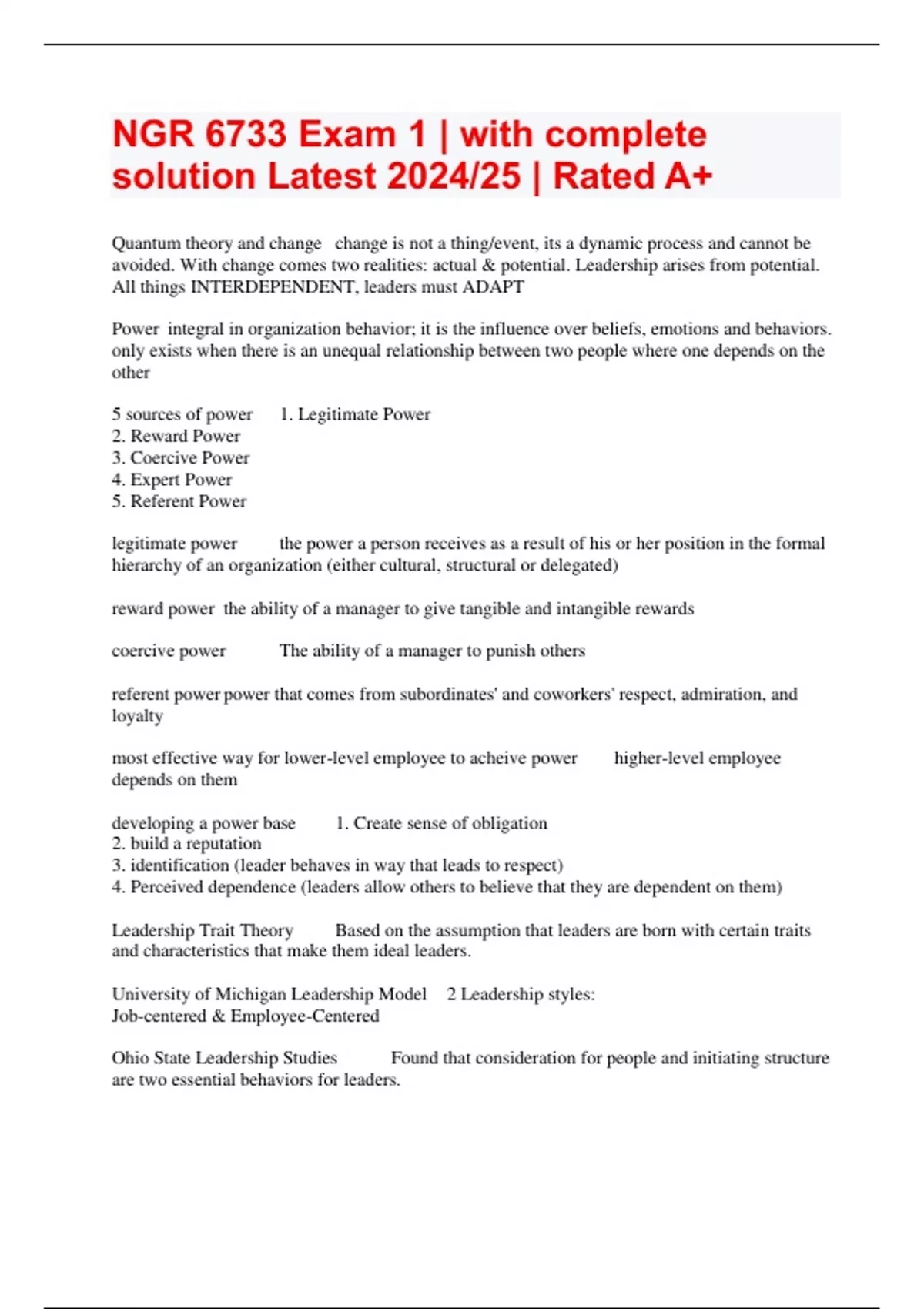 NGR 6733 Exam 1 | with complete solution Latest 2024/25 | Rated A+
