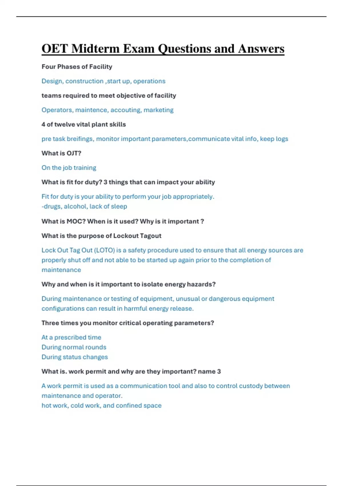 2024 oet midterm exam questions and answers