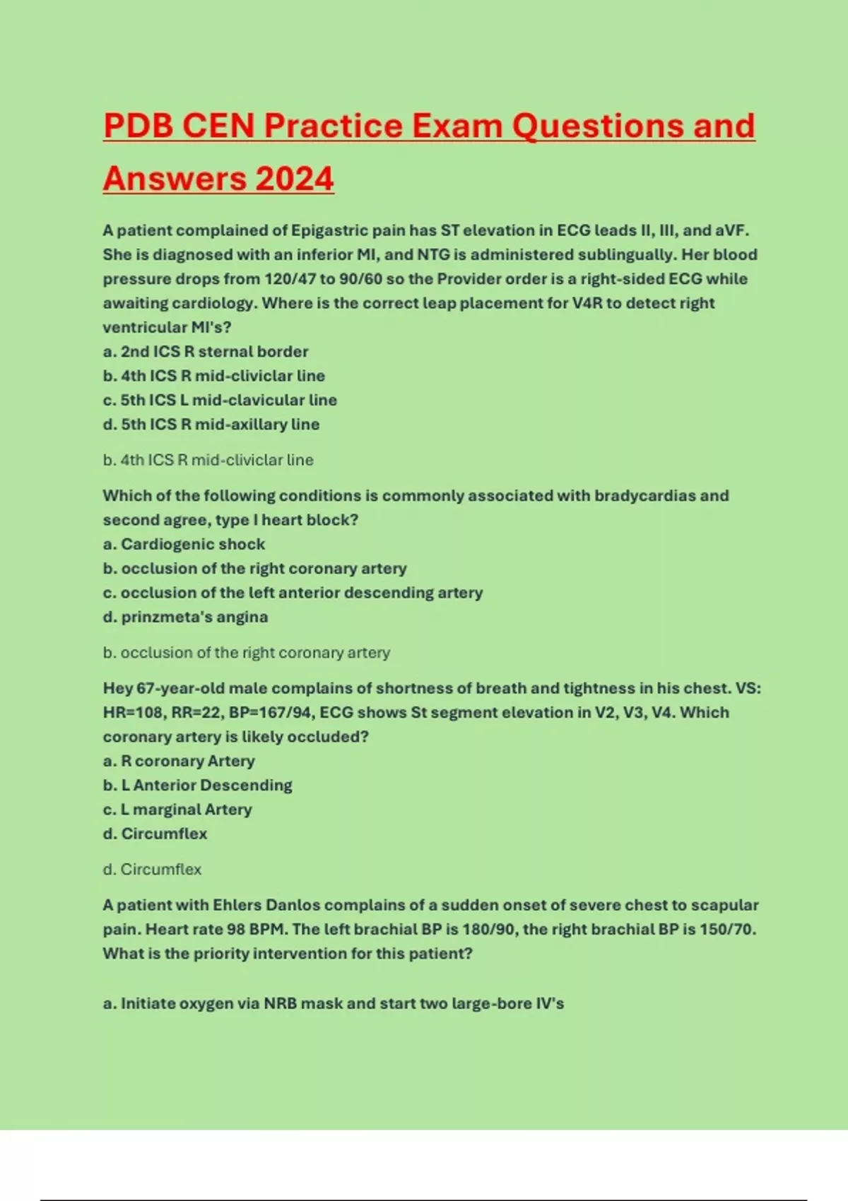PDB CEN 2024 Practice Exam Questions and Answers