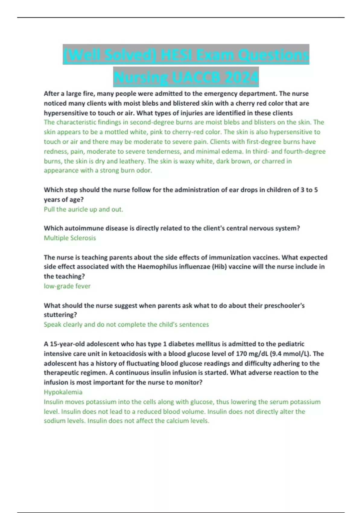 Answered HESI Exam Questions Nursing UACCB 2024