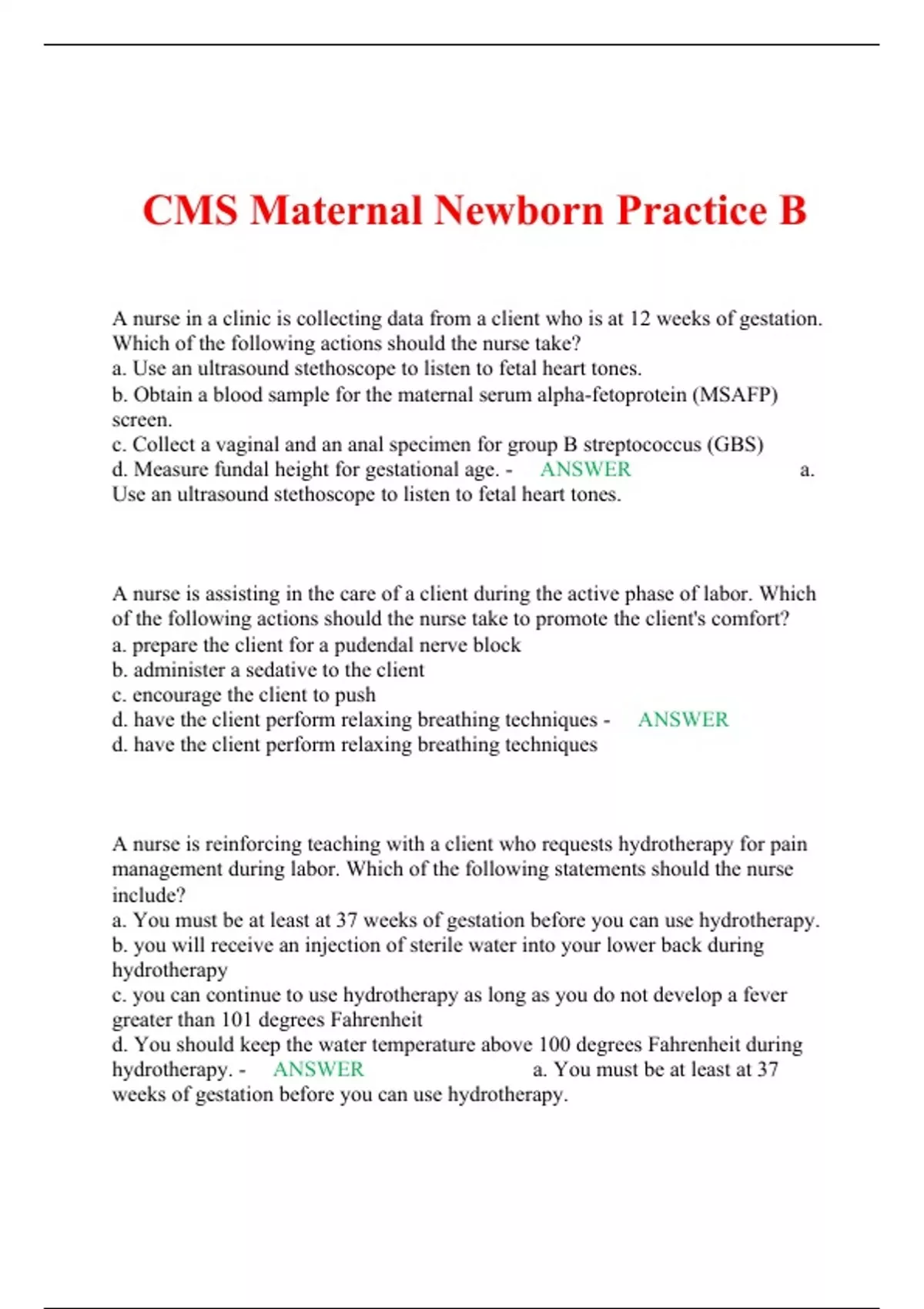 cms maternal newborn practice b