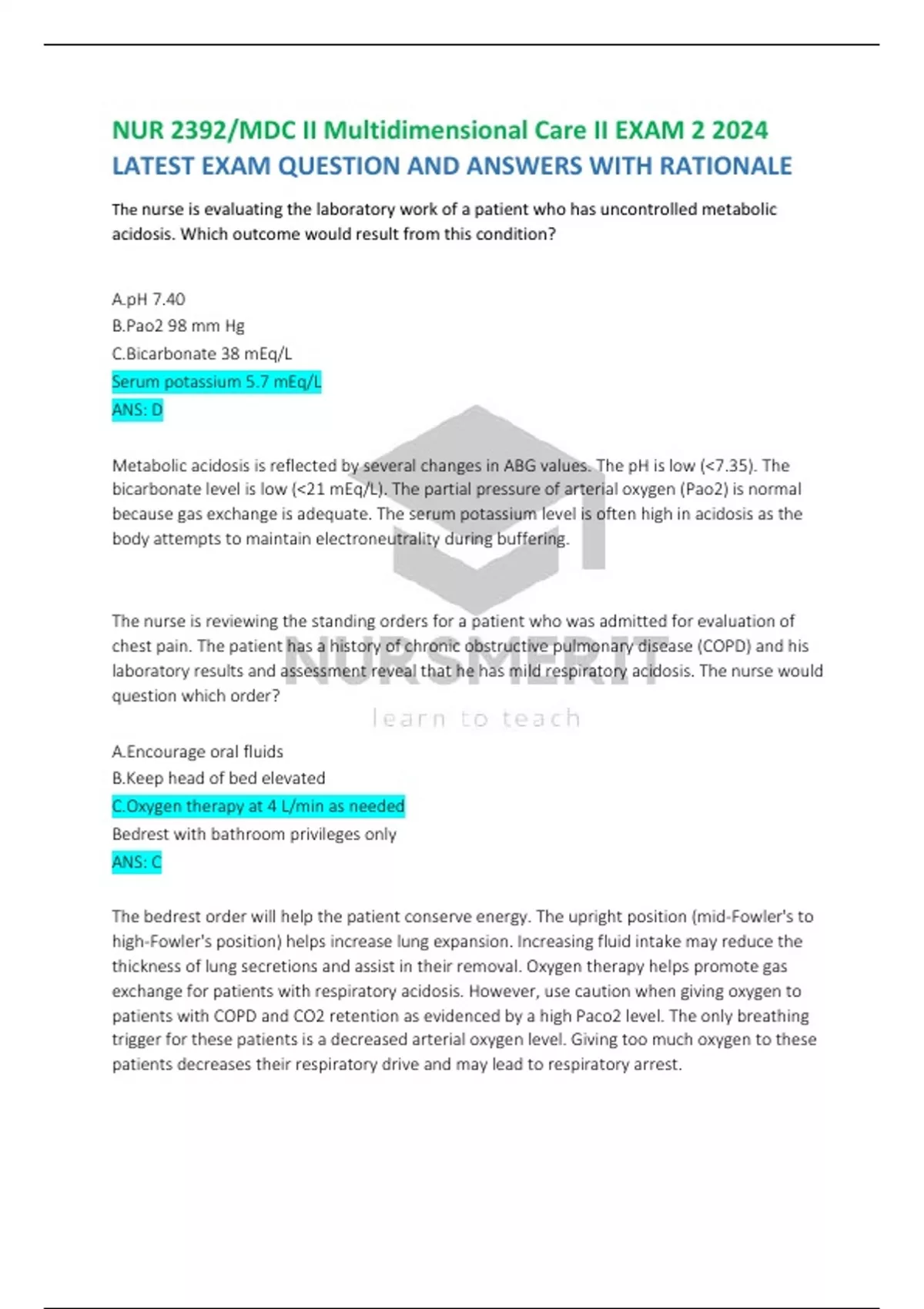 NUR 2392/MDC II Multidimensional Care II EXAM 2 2024 LATEST EXAM QUESTION AND ANSWERS WITH RATIONALE