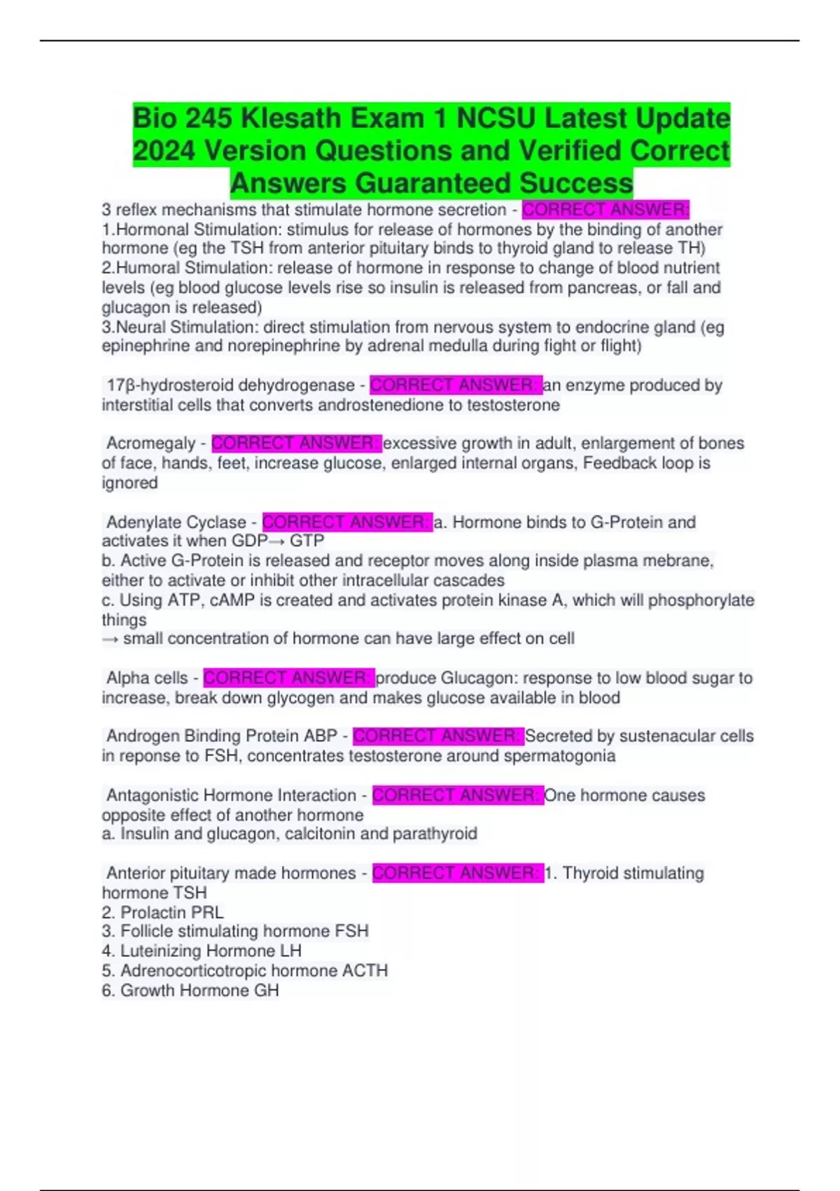Bio 245 Klesath Exam 1 NCSU Latest Update 2024 Version Questions and Verified Correct Answers Guaranteed Success