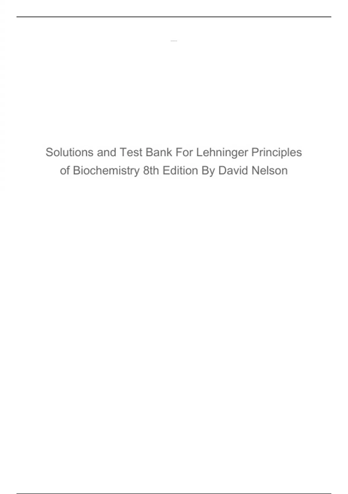 Solutions and Test Bank For Lehninger Principles of Biochemistry 8th Edition By David Nelson