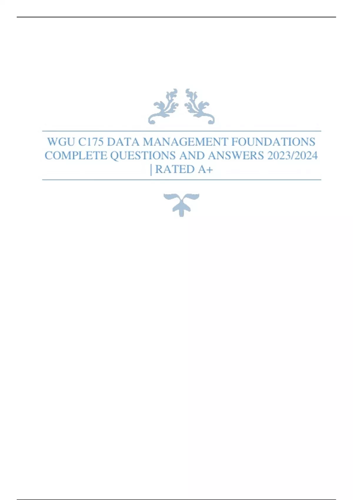 WGU C175 DATA MANAGEMENT FOUNDATIONS COMPLETE QUESTIONS AND ANSWERS 2023/2024 | RATED A+