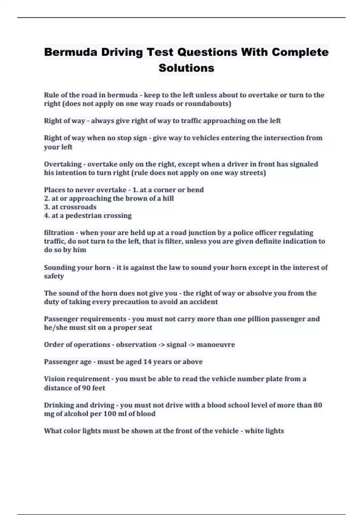 bermuda driving test questions with complete solut
