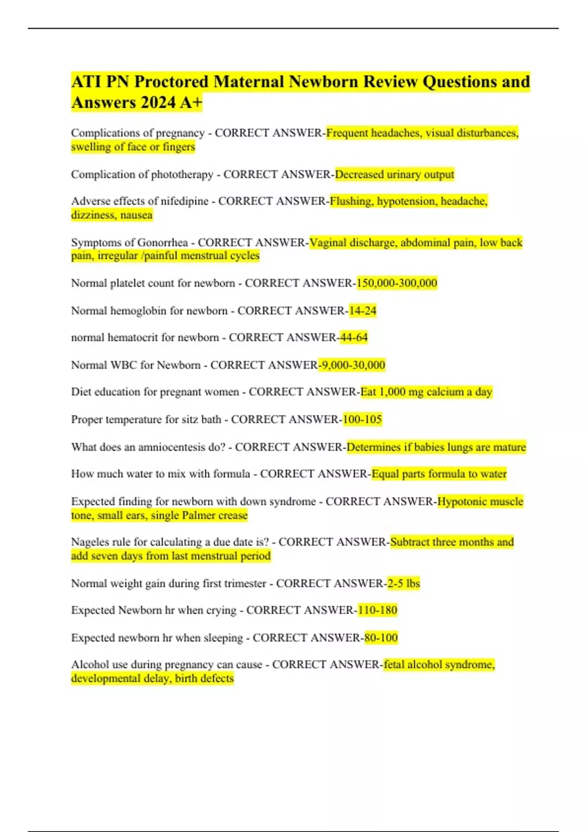 ATI PN Proctored Maternal Newborn Review Questions and Answers 2024 A+