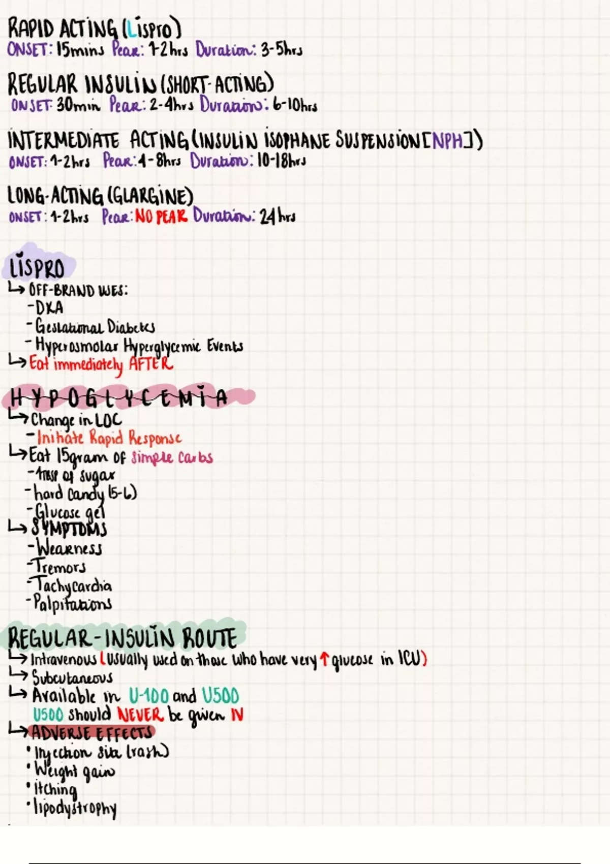 Glucose Regulation Important Quiz/Test Information