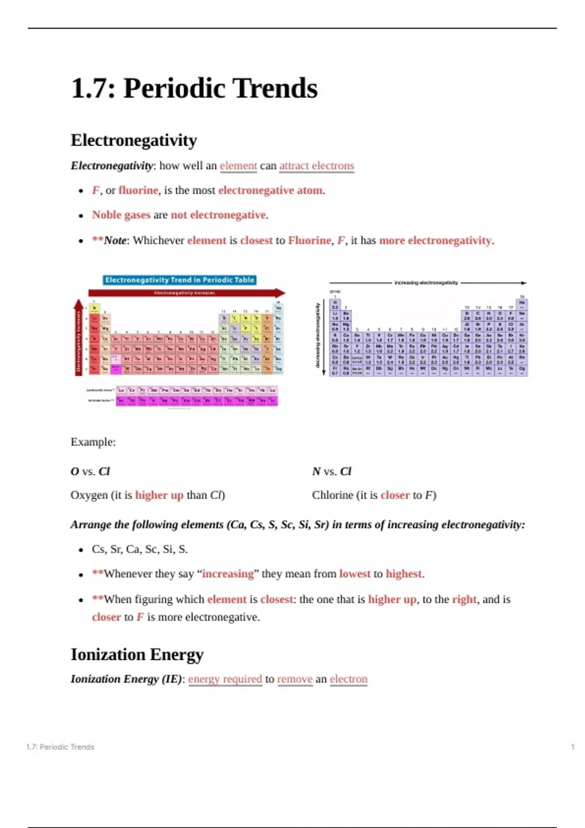 These notes tell you the different periodic trends; from electronegativity to atomic radii.