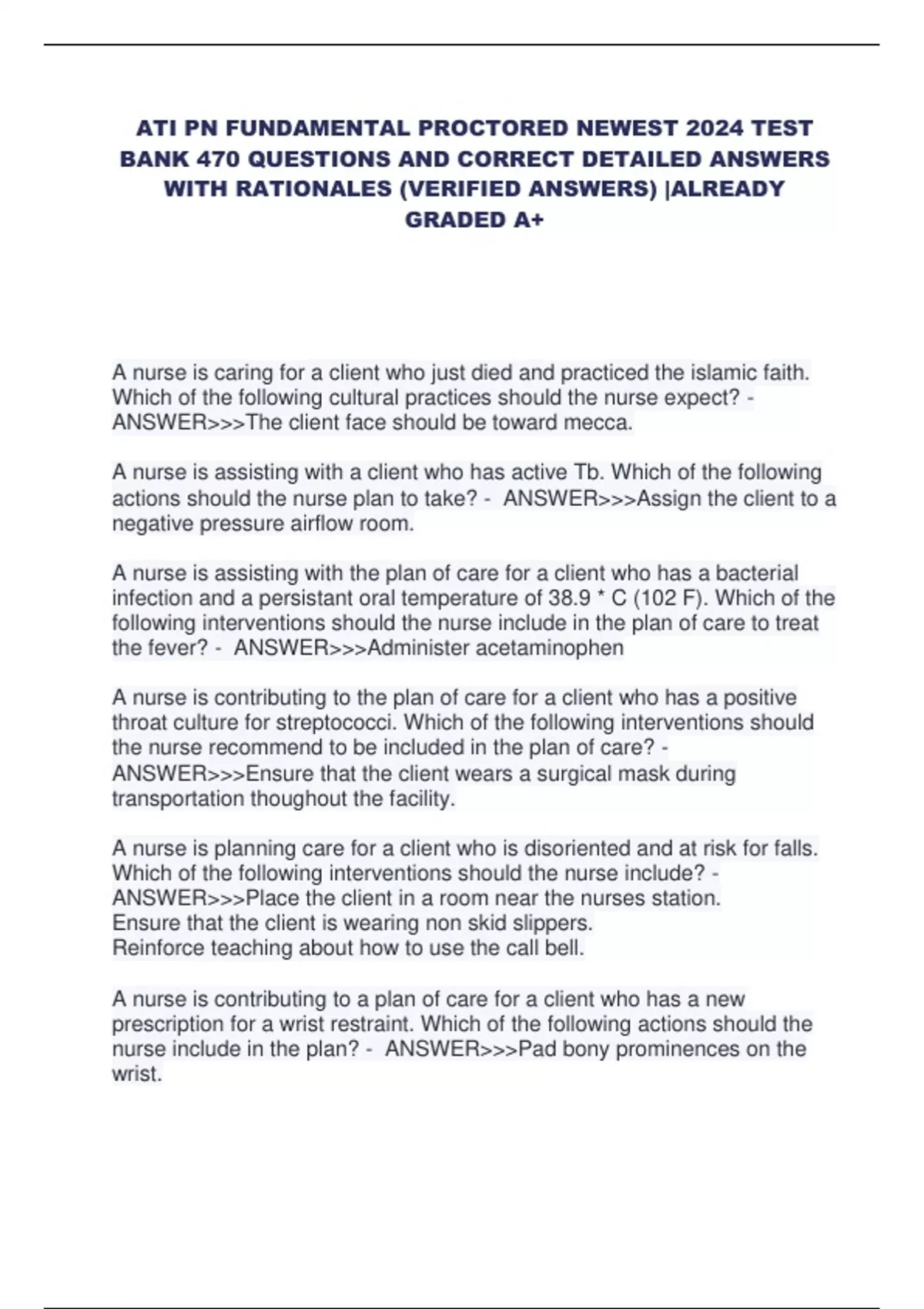 ATI PN FUNDAMENTAL PROCTORED NEWEST 2024 TEST BANK 470 QUESTIONS AND CORRECT DETAILED ANSWERS WITH RATIONALES (VERIFIED ANSWERS) |ALREADY GRADED A+
