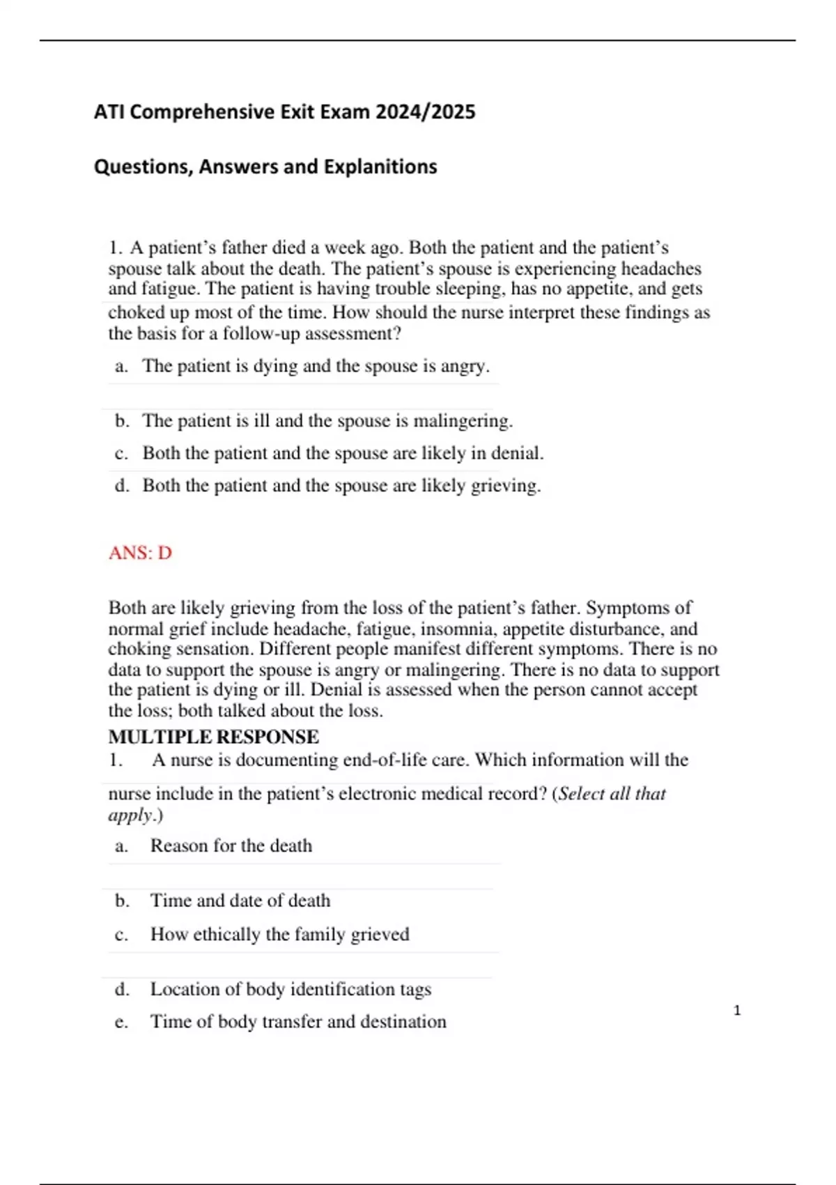 ATI Comprehensive Exit Exam 2024/2025 Questions, Answers and Explanitions