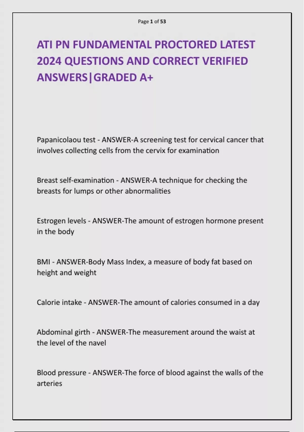ATI PN FUNDAMENTAL PROCTORED LATEST 2024 QUESTIONS AND CORRECT VERIFIED ANSWERS|GRADED A+