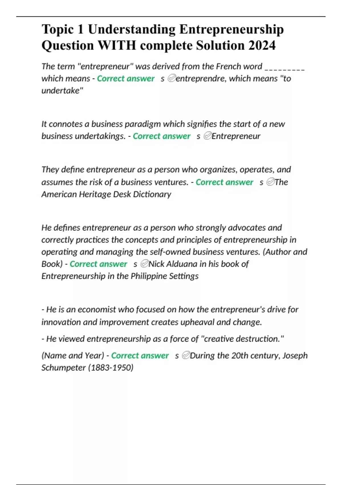 Topic 1 Understanding Entrepreneurship Question WITH complete Solution 2024
