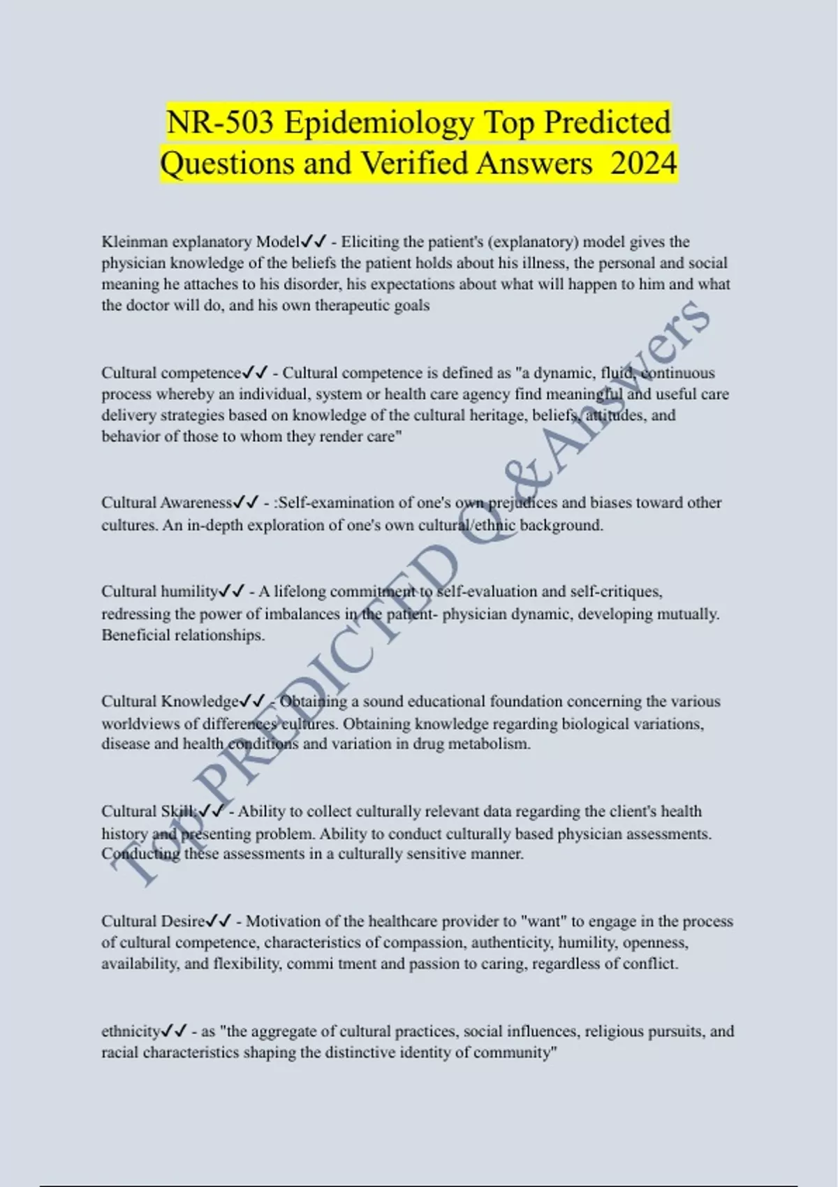 NR-503 Epidemiology Latest Edition Mandatory Revision Questions and Verified Answers 2024