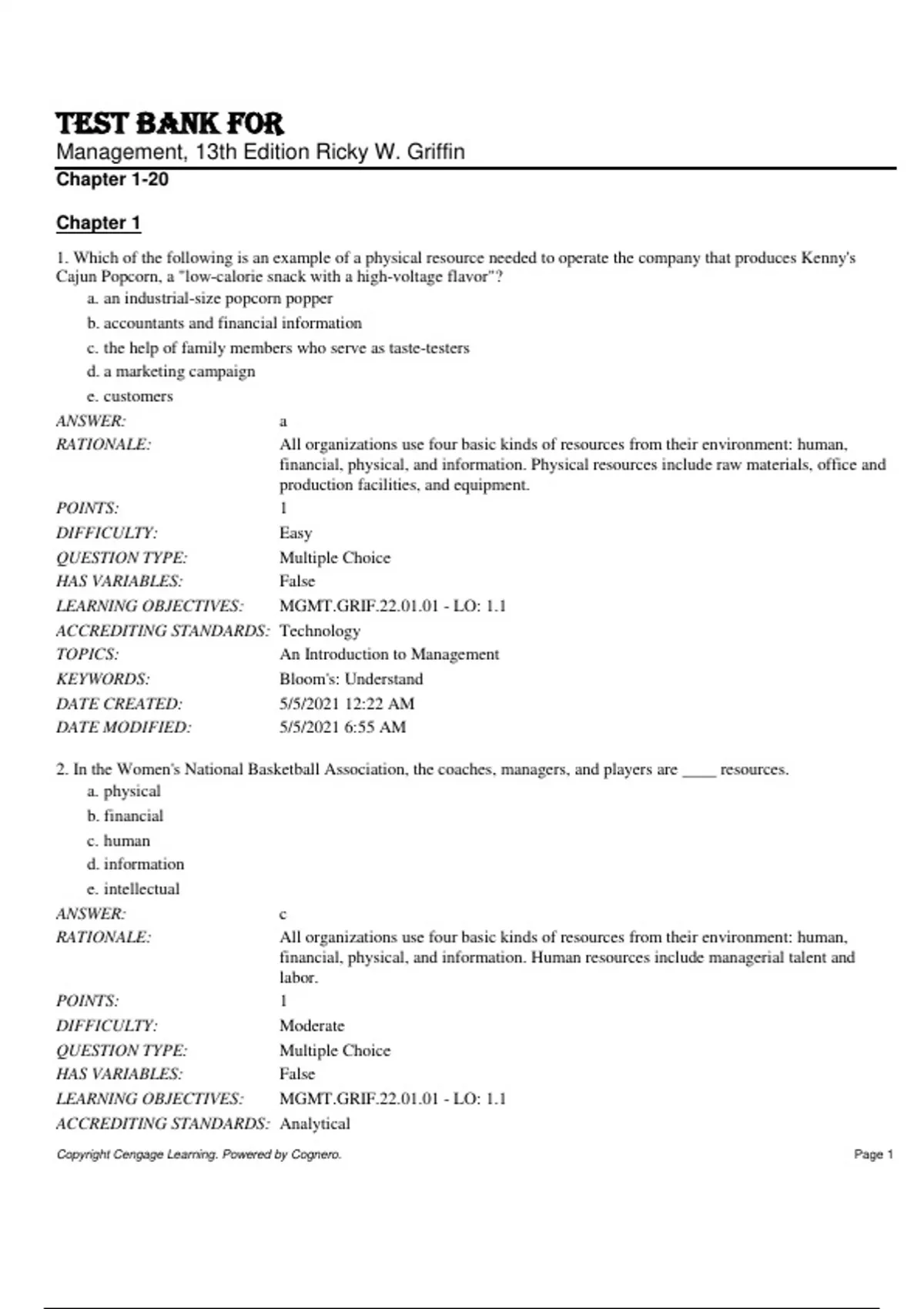 Test Bank For Management, 13th Edition Ricky W. Griffin Chapter(1-20)