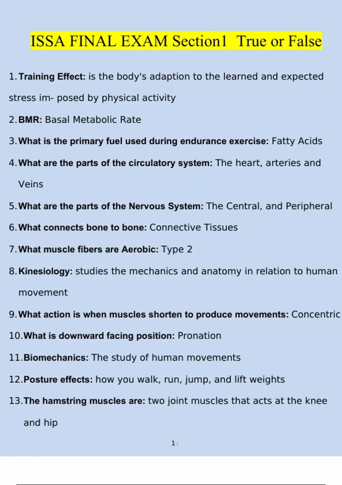 ISSA FINAL EXAM Section1 True or False Questions and Answers (2024 / 2025) (Verified Answers)