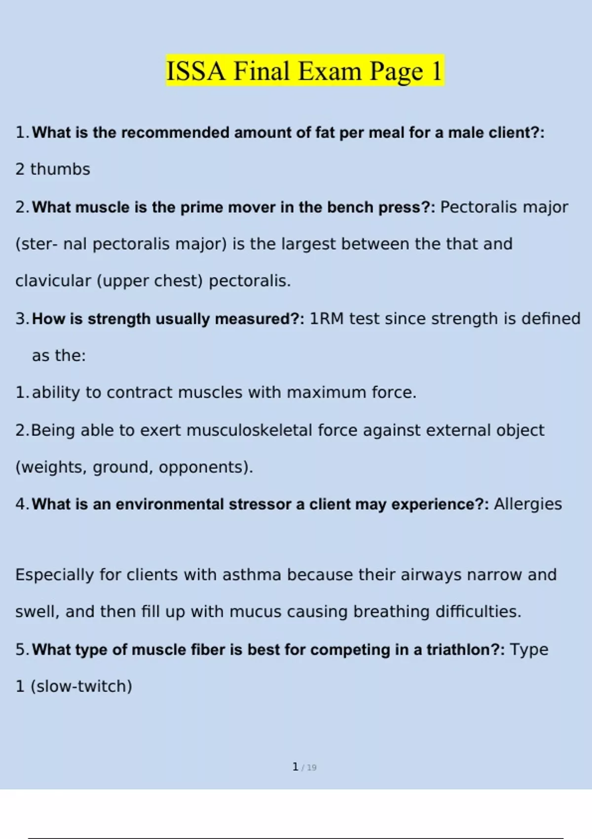 ISSA Final Exam Page 1 Questions and Answers (2024 / 2025) (Verified Answers)