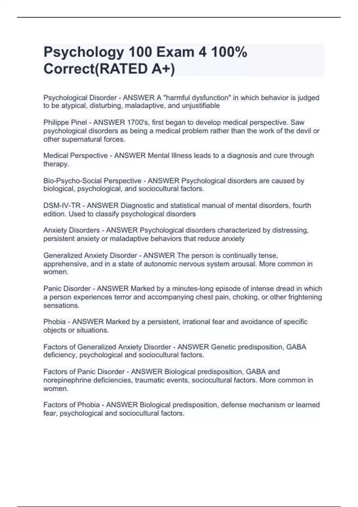 Psychology 100 Exam 4 100% Correct(RATED A+)Psychology 100 Exam 4 100% Correct(RATED A+)Psychology 100 Exam 4 100% Correct(RATED A+)Psychology 100 Exam 4 100% Correct(RATED A+)Psychology 100 Exam 4 100% Correct(RATED A+)Psychology 100 Exam 4 100% Correct(RATED A+)Psychology 100 Exam 4 100% Correct(RATED A+)Psychology 100 Exam 4 100% Correct(RATED A+)Psychology 100 Exam 4 100% Correct(RATED A+)Psychology 100 Exam 4 100% Correct(RATED A+)Psychology 100 Exam 4 100% Correct(RATED A+)Psychology 100 Exam 4 100% Correct(RATED A+)Psychology 100 Exam 4 100% Correct(RATED A+)
