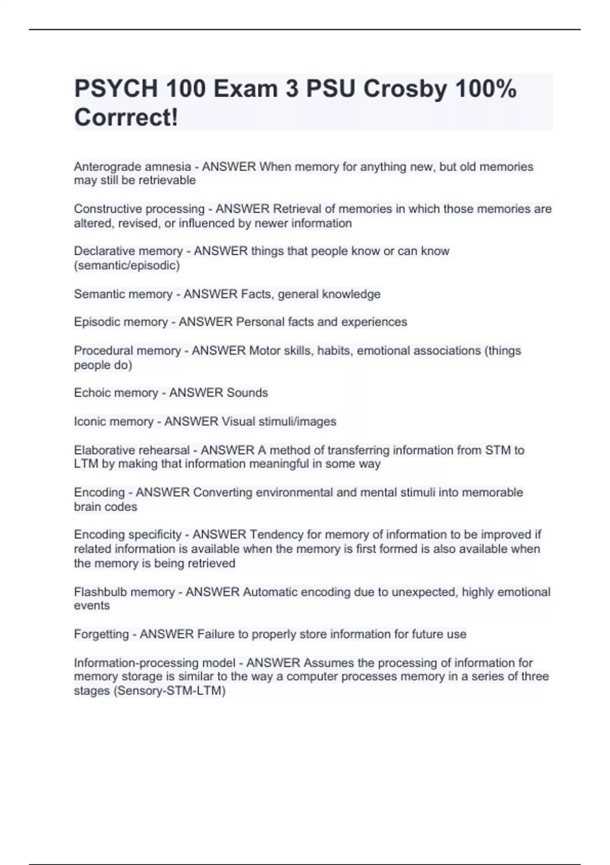 PSYCH 100 Exam 3 PSU Crosby 100% Corrrect!PSYCH 100 Exam 3 PSU Crosby 100% Corrrect!PSYCH 100 Exam 3 PSU Crosby 100% Corrrect!PSYCH 100 Exam 3 PSU Crosby 100% Corrrect!PSYCH 100 Exam 3 PSU Crosby 100% Corrrect!PSYCH 100 Exam 3 PSU Crosby 100% Corrrect!PSYCH 100 Exam 3 PSU Crosby 100% Corrrect!PSYCH 100 Exam 3 PSU Crosby 100% Corrrect!PSYCH 100 Exam 3 PSU Crosby 100% Corrrect!PSYCH 100 Exam 3 PSU Crosby 100% Corrrect!PSYCH 100 Exam 3 PSU Crosby 100% Corrrect!