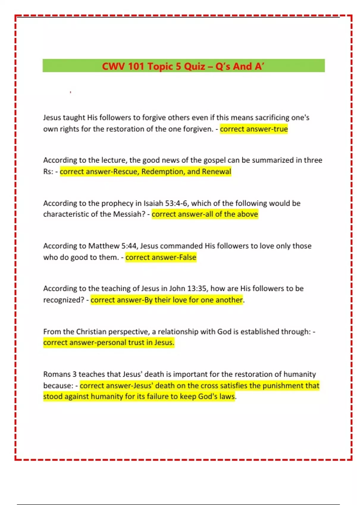 CWV 101 Topic 5 Quiz – Q’s And A’ 2024