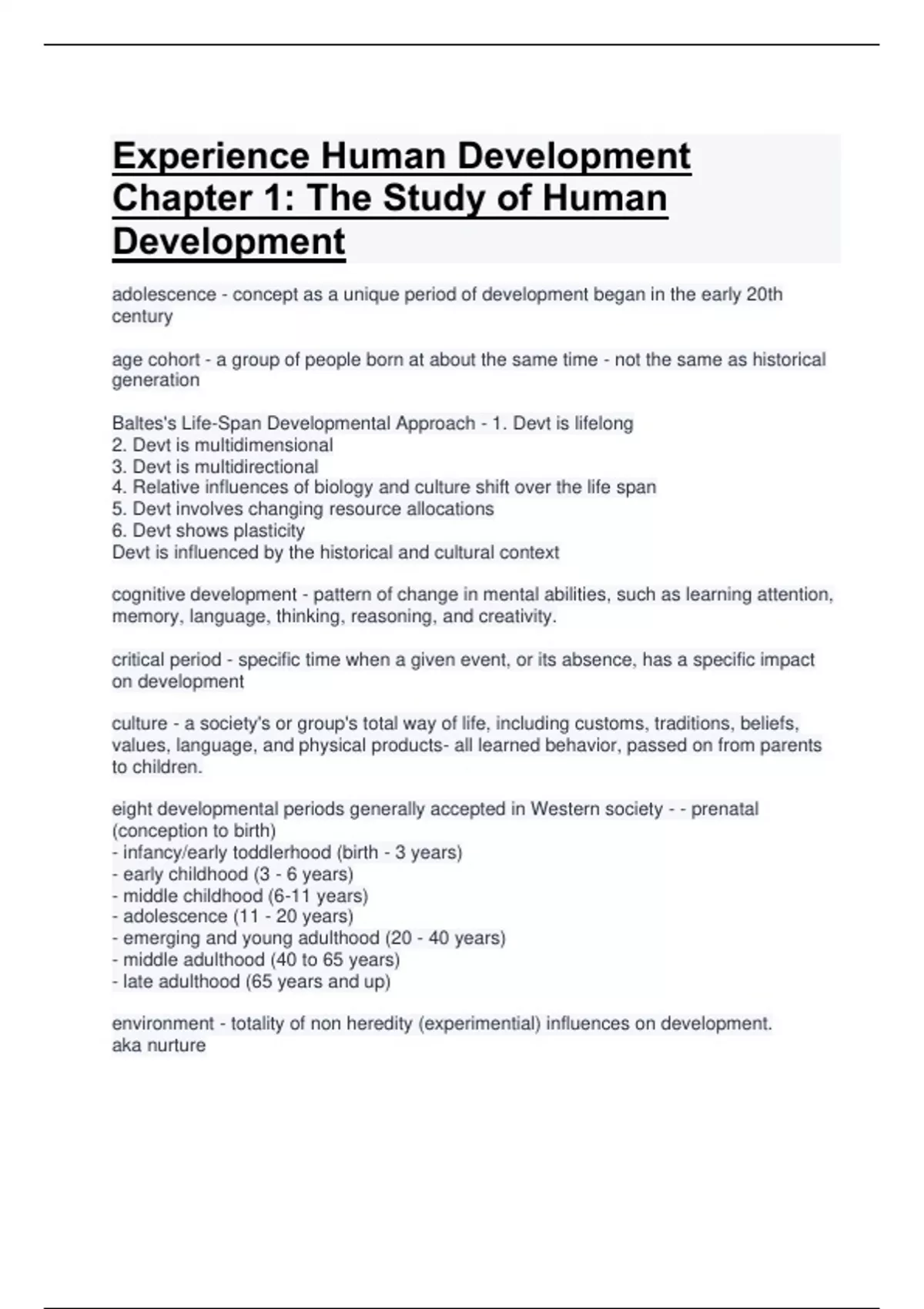 experience human development chapter 1 the study