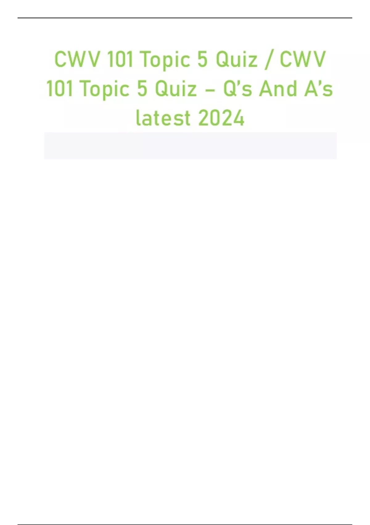 CWV 101 Topic 5 Quiz / CWV 101 Topic 5 Quiz – Q’s And A’s latest 2024