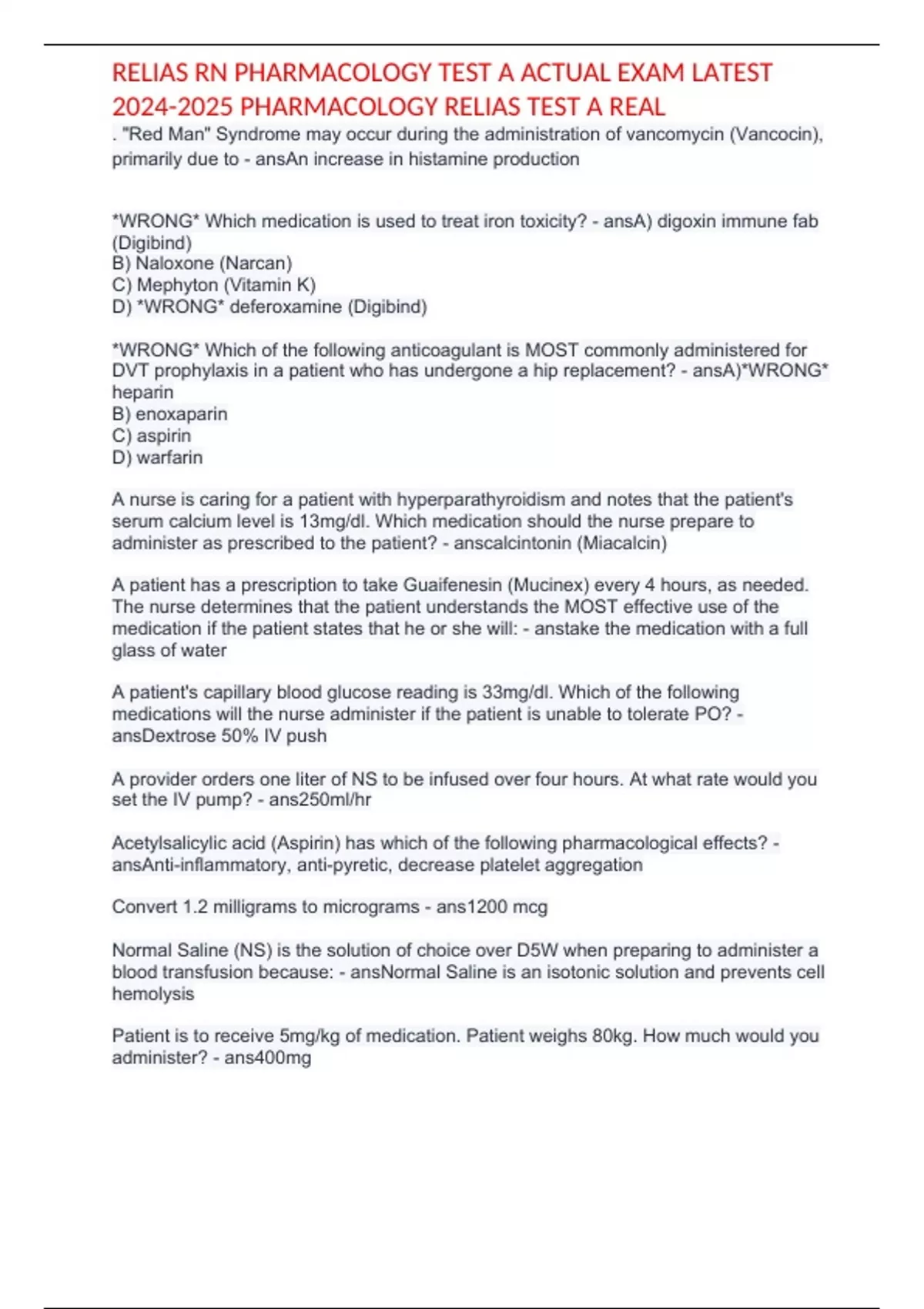 RELIAS RN PHARMACOLOGY TEST A ACTUAL EXAM LATEST PHARMACOLOGY RELIAS TEST A REAL