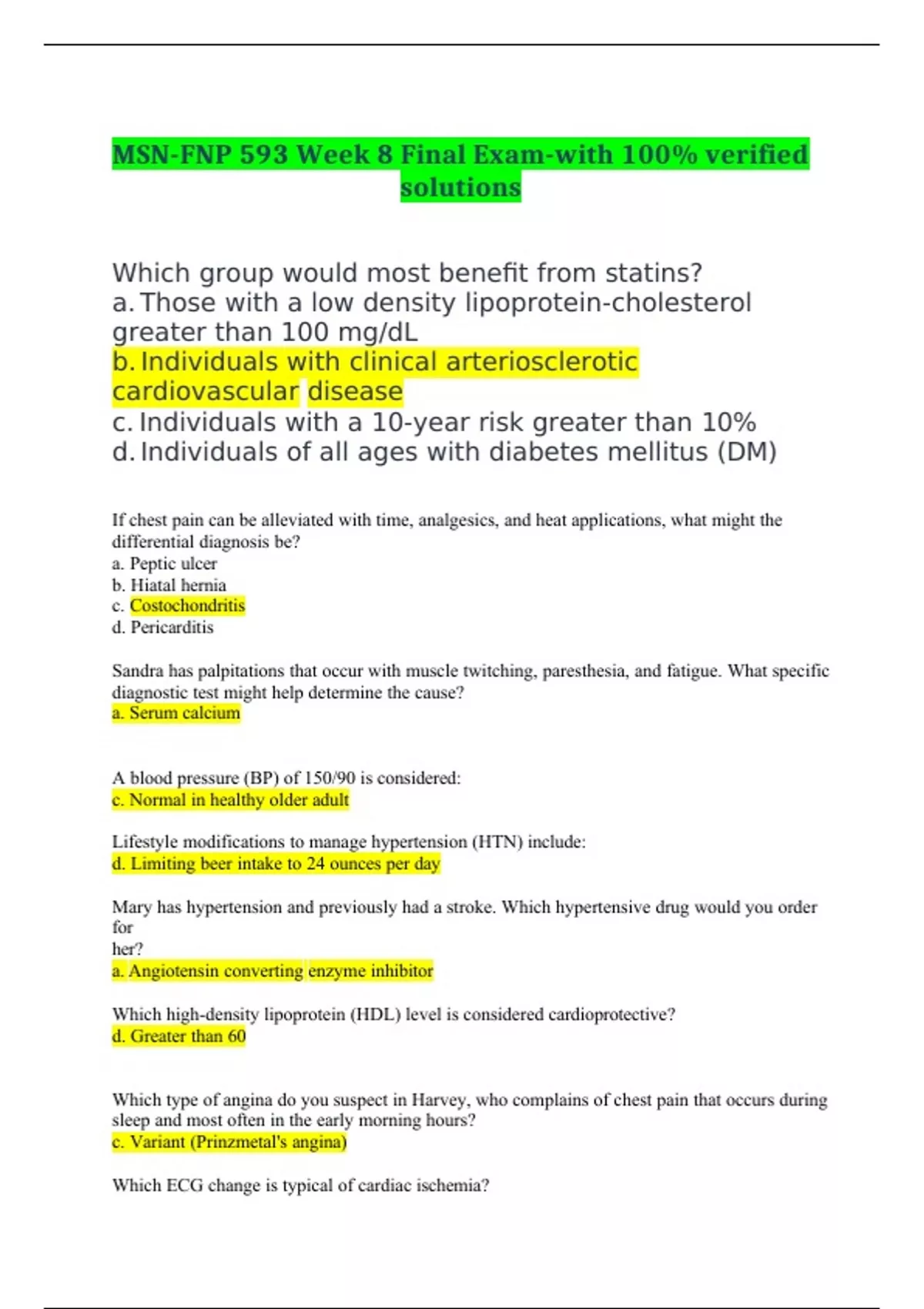 MSN-FNP 593 Week 8 Final Exam-with 100% verified solutions