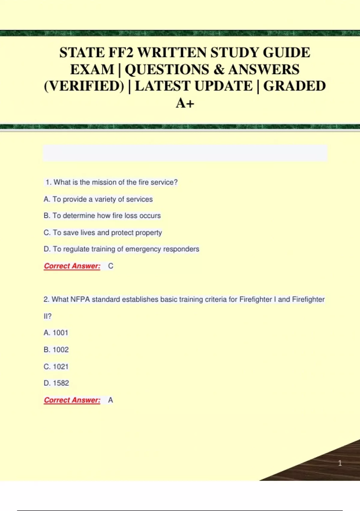STATE FF2 WRITTEN STUDY GUIDE EXAM | QUESTIONS & ANSWERS (VERIFIED) | LATEST UPDATE | GRADED A