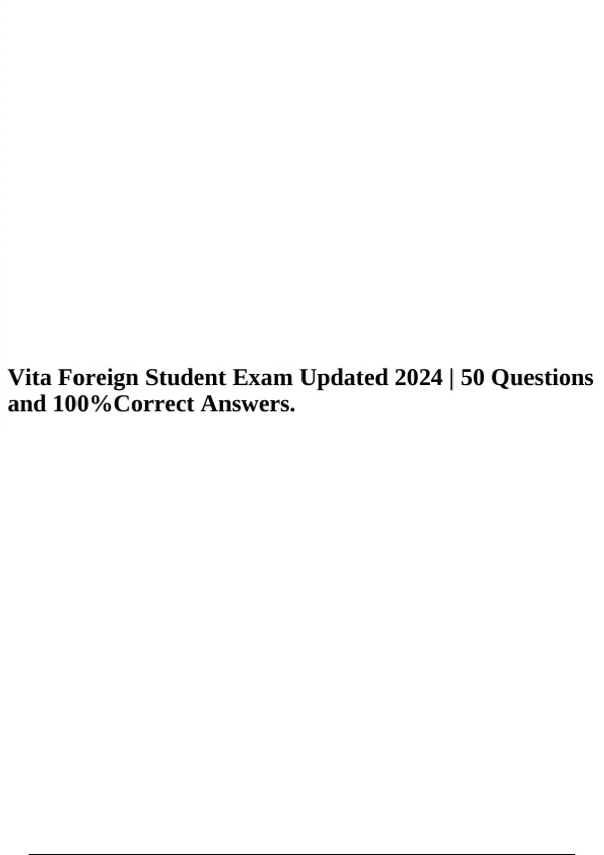 Vita Foreign Student Exam Updated 2024 | 50 Questions and 100%Correct Answers.