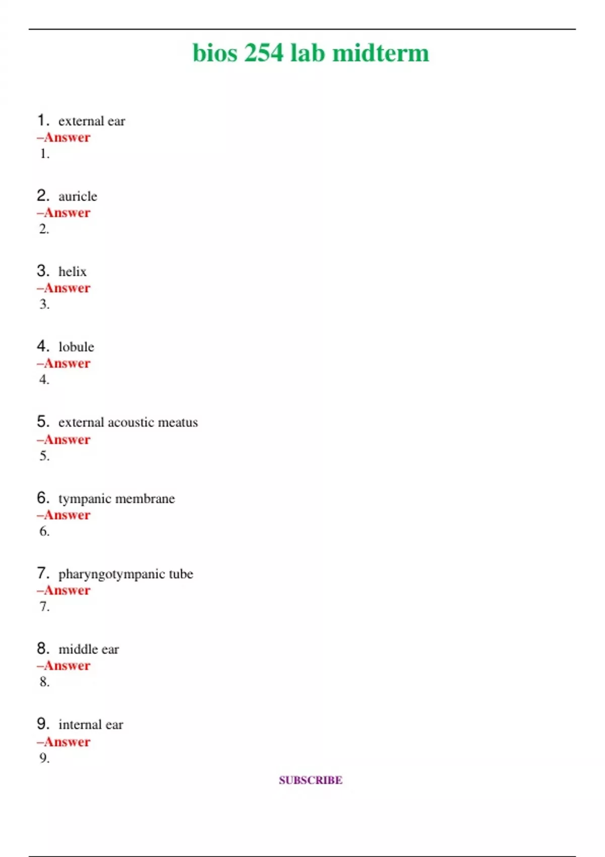 BIOS 254 Lab Midterm (Latest 2024 / 2025) Questions and Answers (Verified Answers)