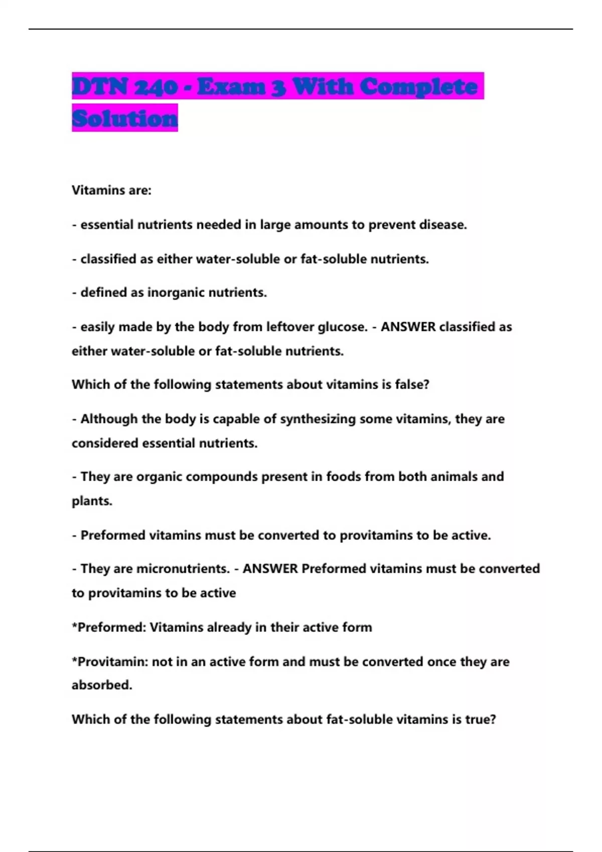 DTN 240 BUNDLED EXAMS WITH SOLUTION