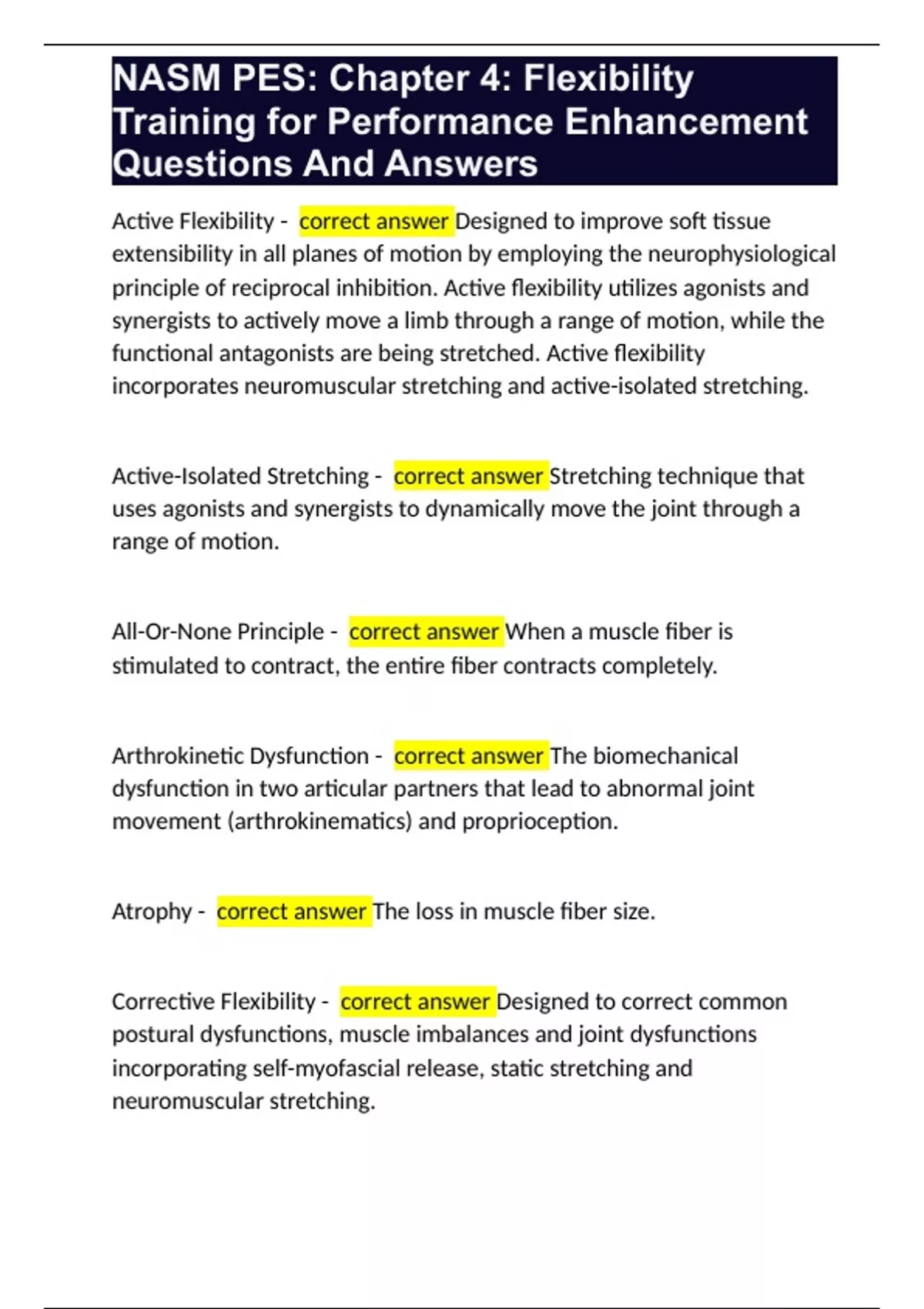 NASM PES: Chapter 4: Flexibility Training for Performance Enhancement Questions And Answers