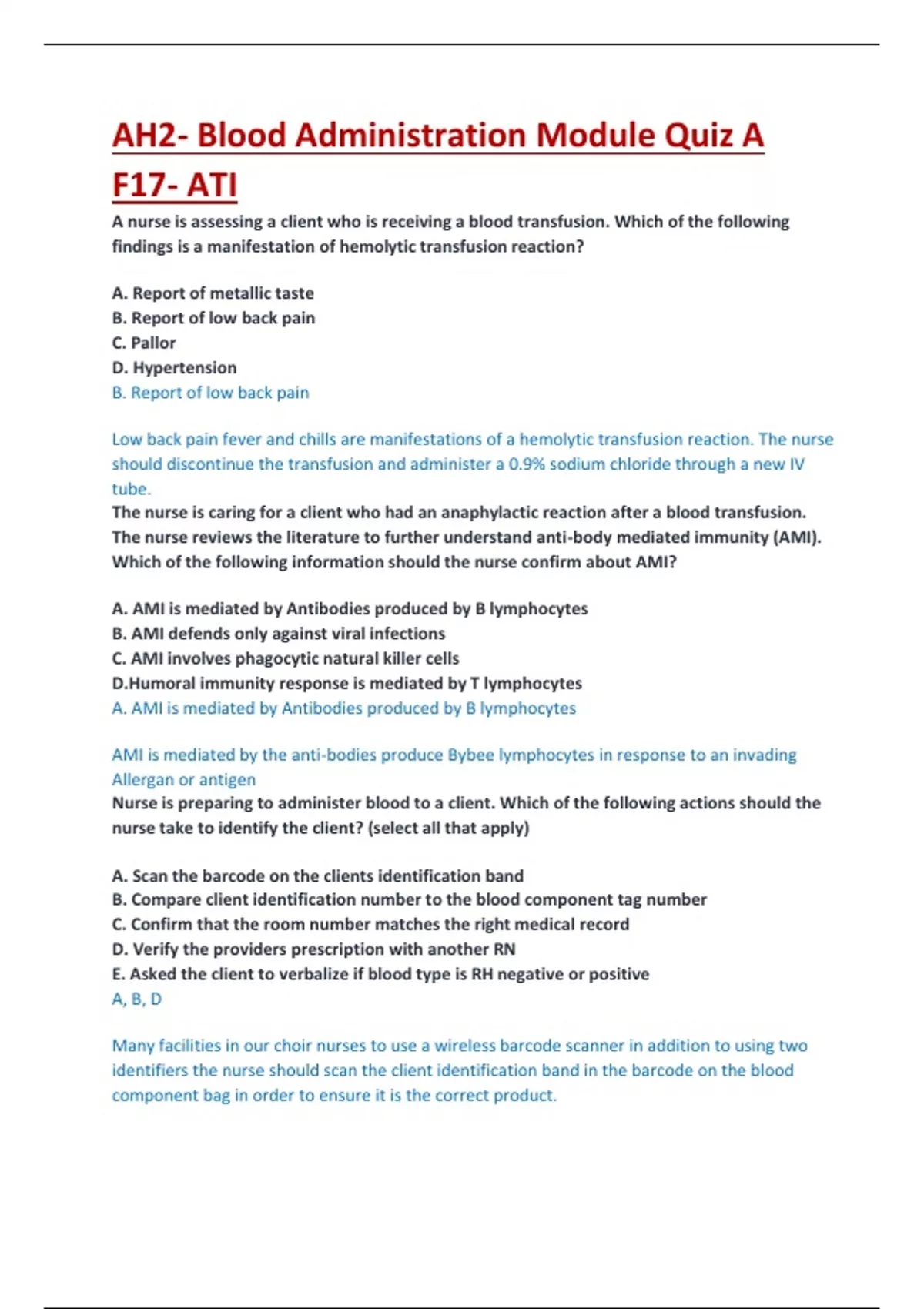Updated AH2- Blood Administration Module Quiz A F17- ATI