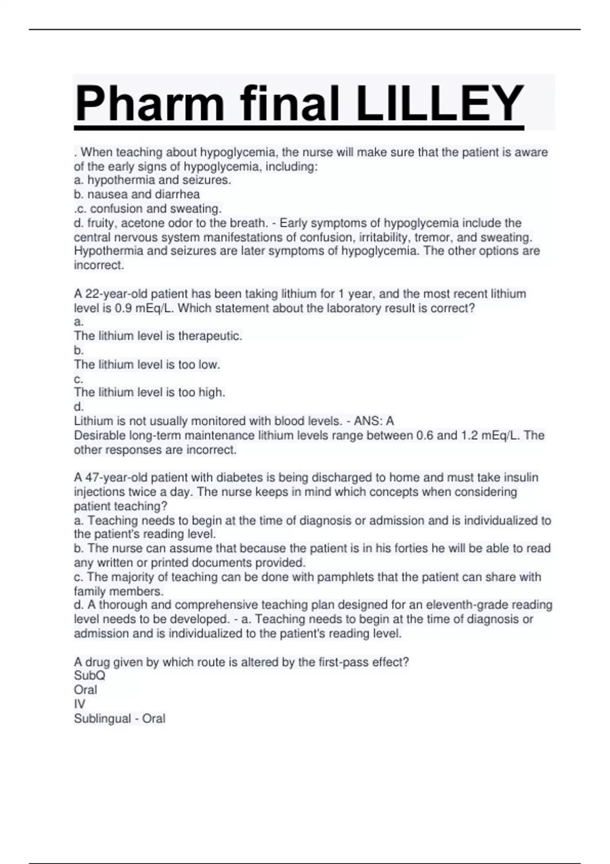 Pharm final LILLEY