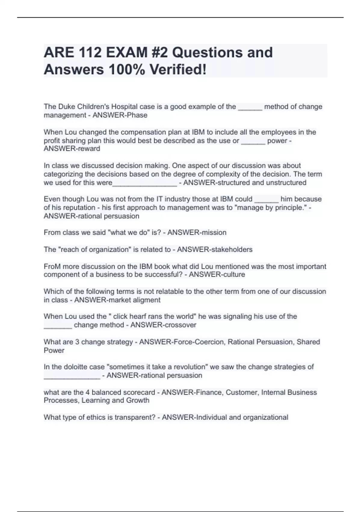 ARE 112 EXAM #2 Questions and Answers 100% Verified!