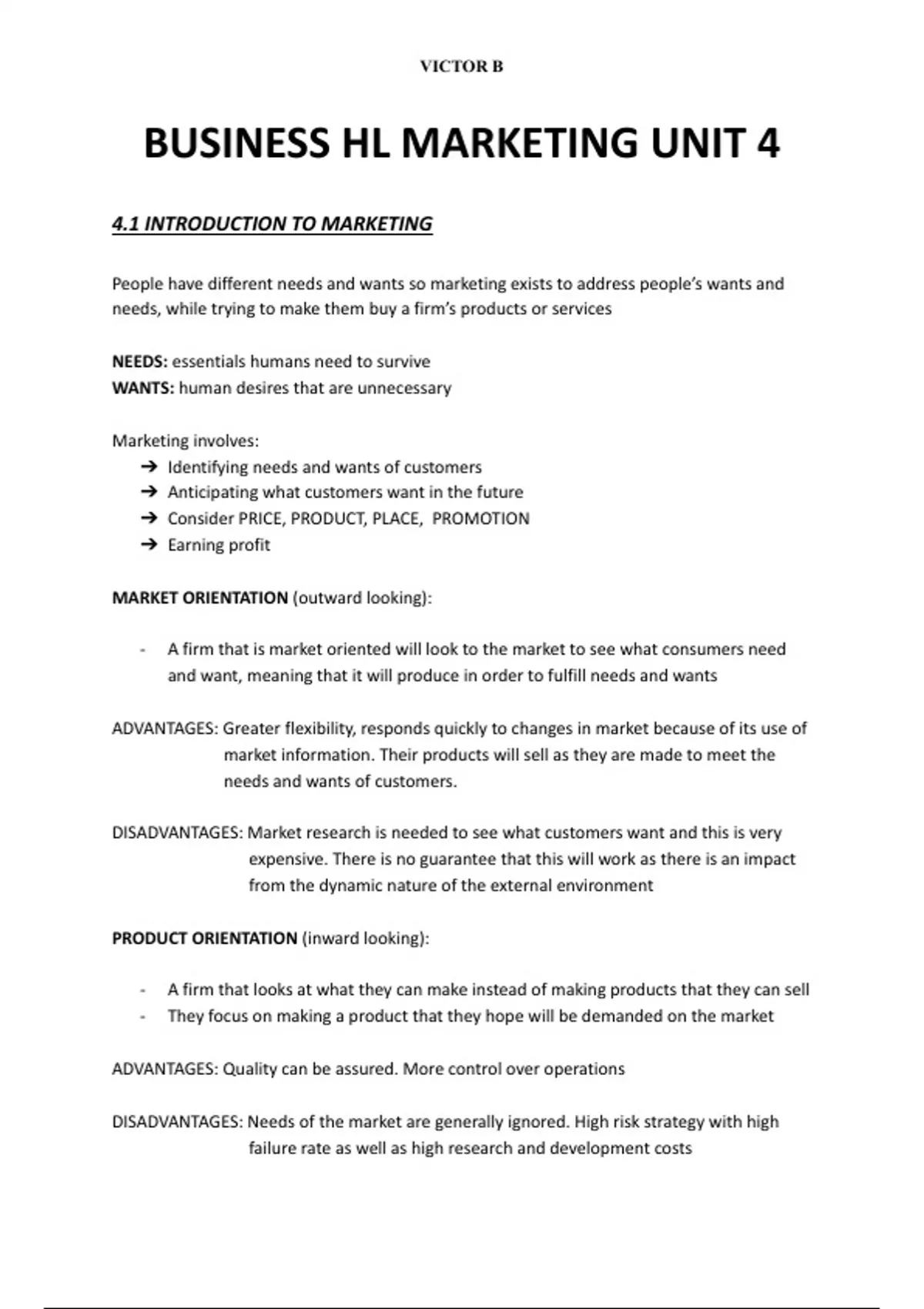IB BUSINESS MANAGEMENT Unit 4 - Marketing