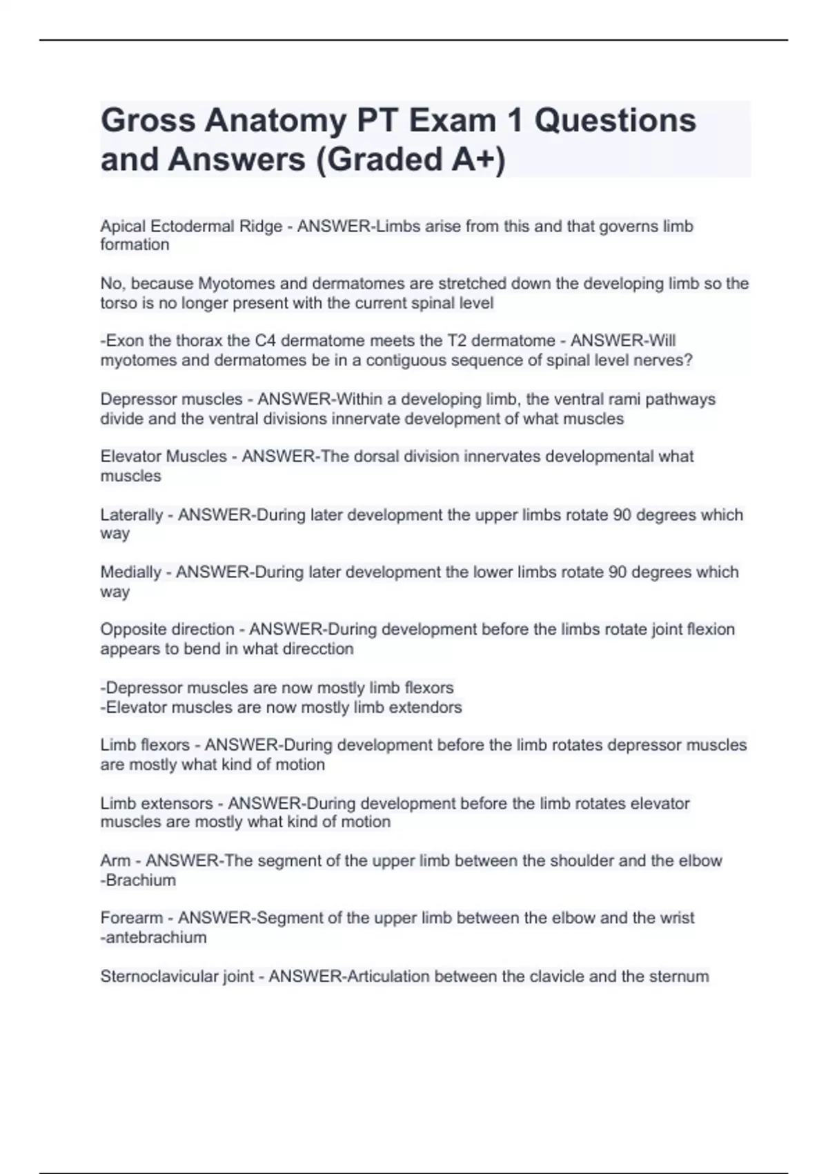 Gross Anatomy PT Exam 1 Questions and Answers (Graded A+)