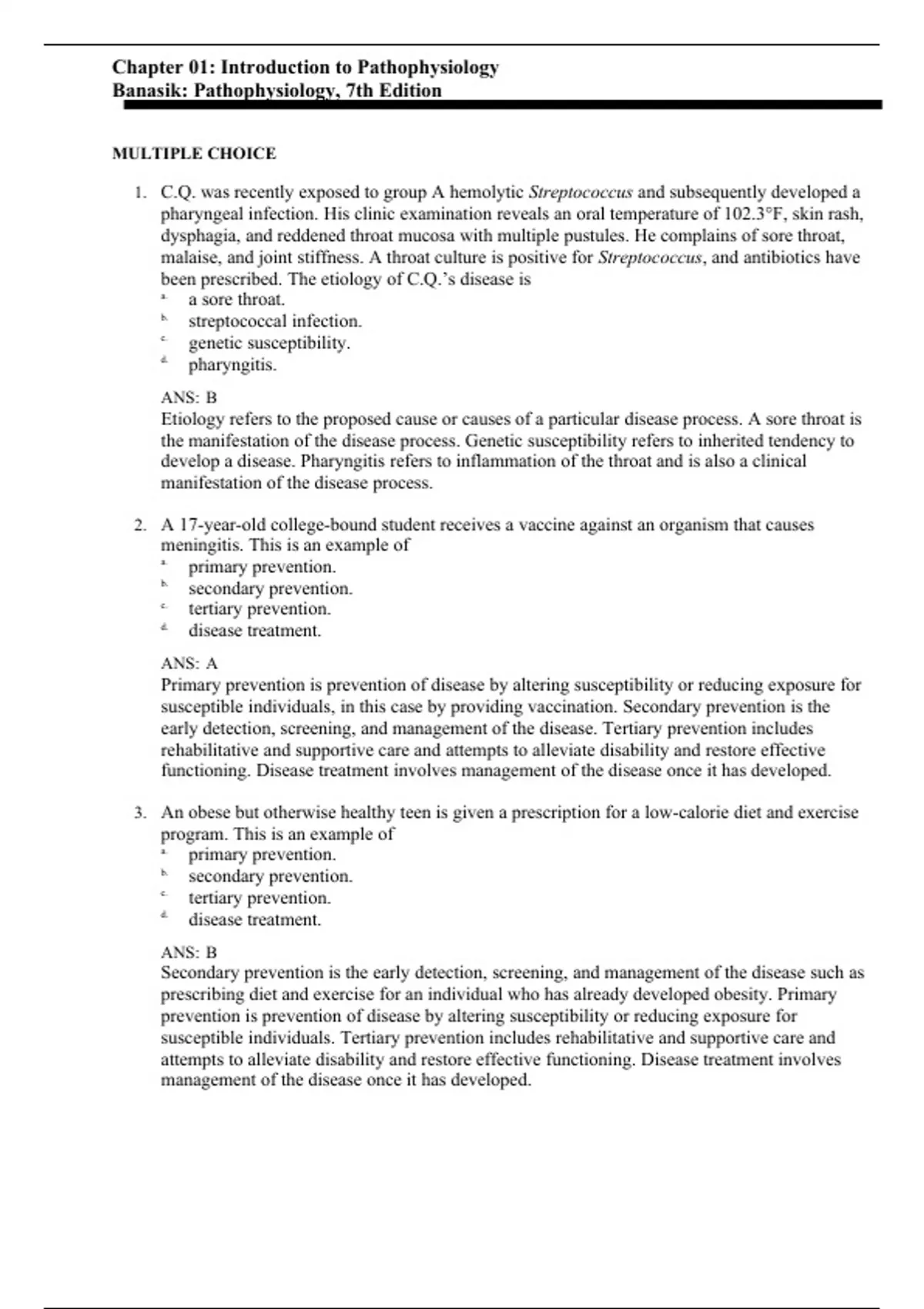 Test Bank For Pathophysiology 7th Edition by Jacquelyn L. Banasik Chapter 1-54|Complete Guide