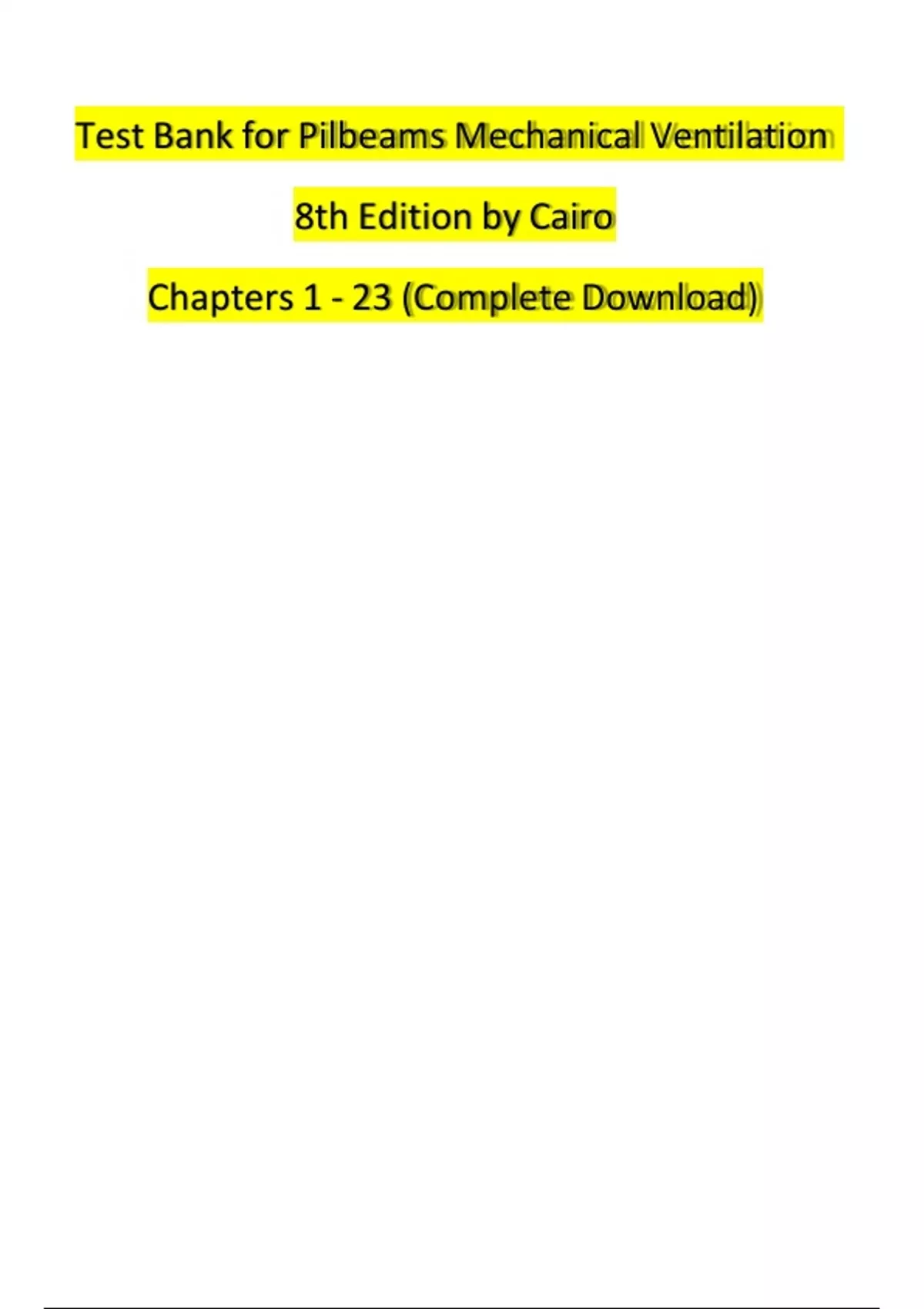 TEST BANK For Pilbeams Mechanical Ventilation, 8th Edition by Cairo, Chapters 1 - 23 (Verified by Experts)